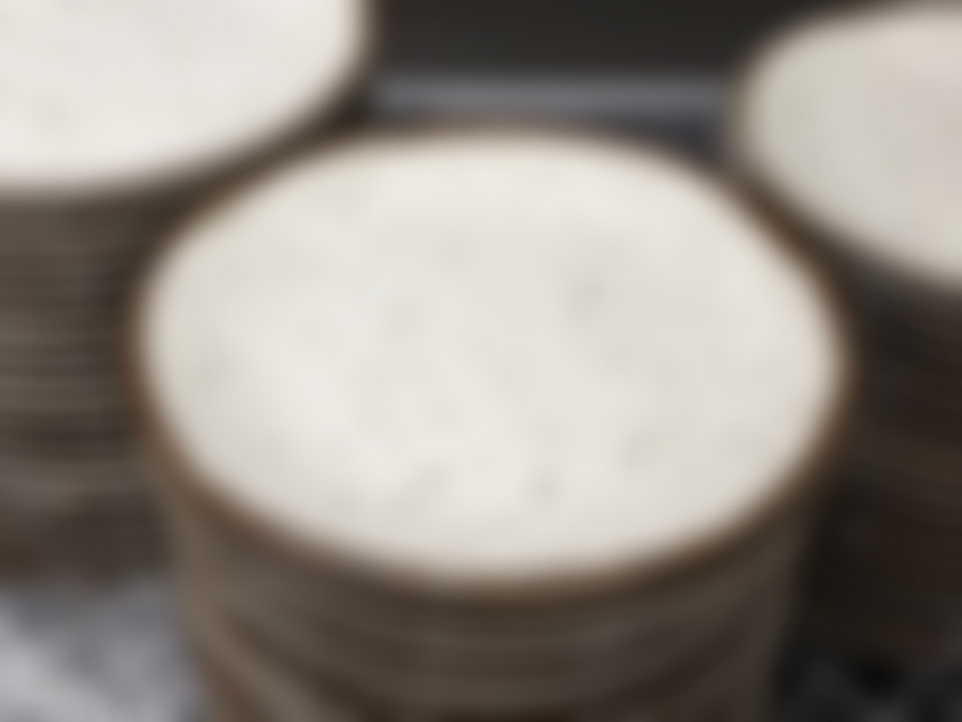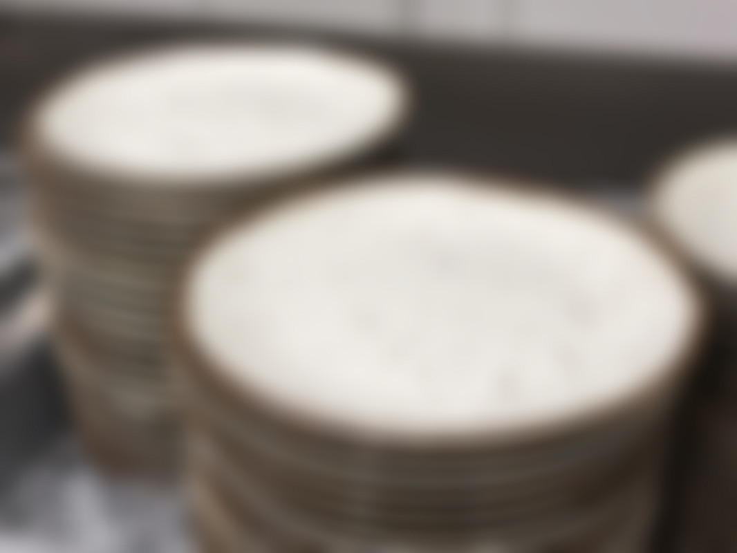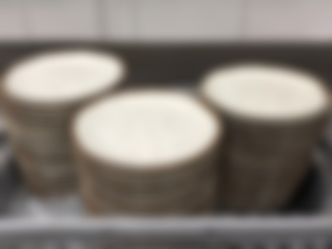 Not allowedCa 100 st keramiktallrikar i vit glasyr med bruna fläckar och brunt kant.