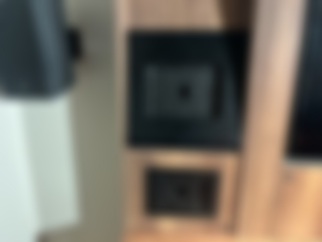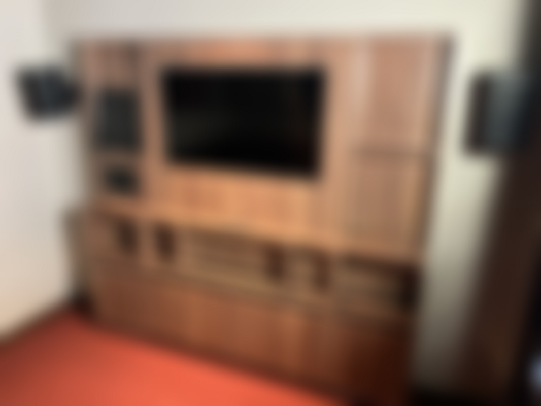 Mediavägg bredd: 210cm, höjd: 193cm, djup:25cm, hållare för iPad Pro 11” och iPad mini.