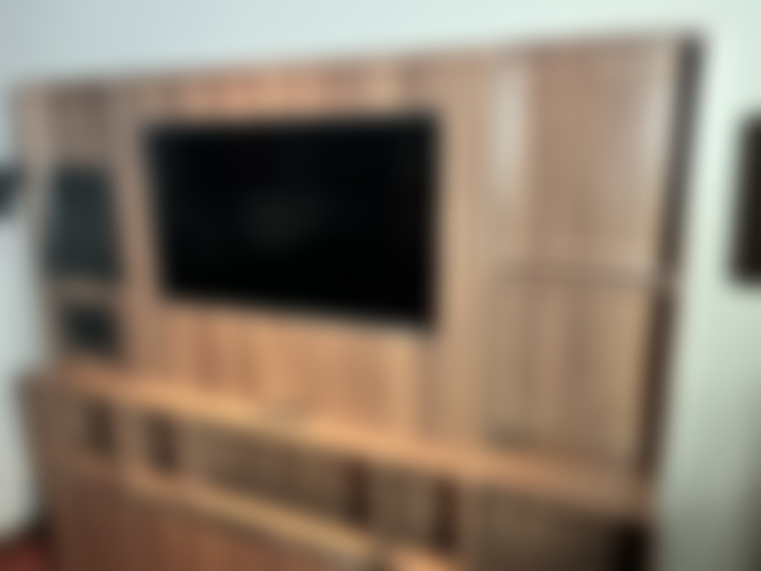 Mediavägg bredd: 210cm, höjd: 193cm, djup:25cm, hållare för iPad Pro 11” och iPad mini.