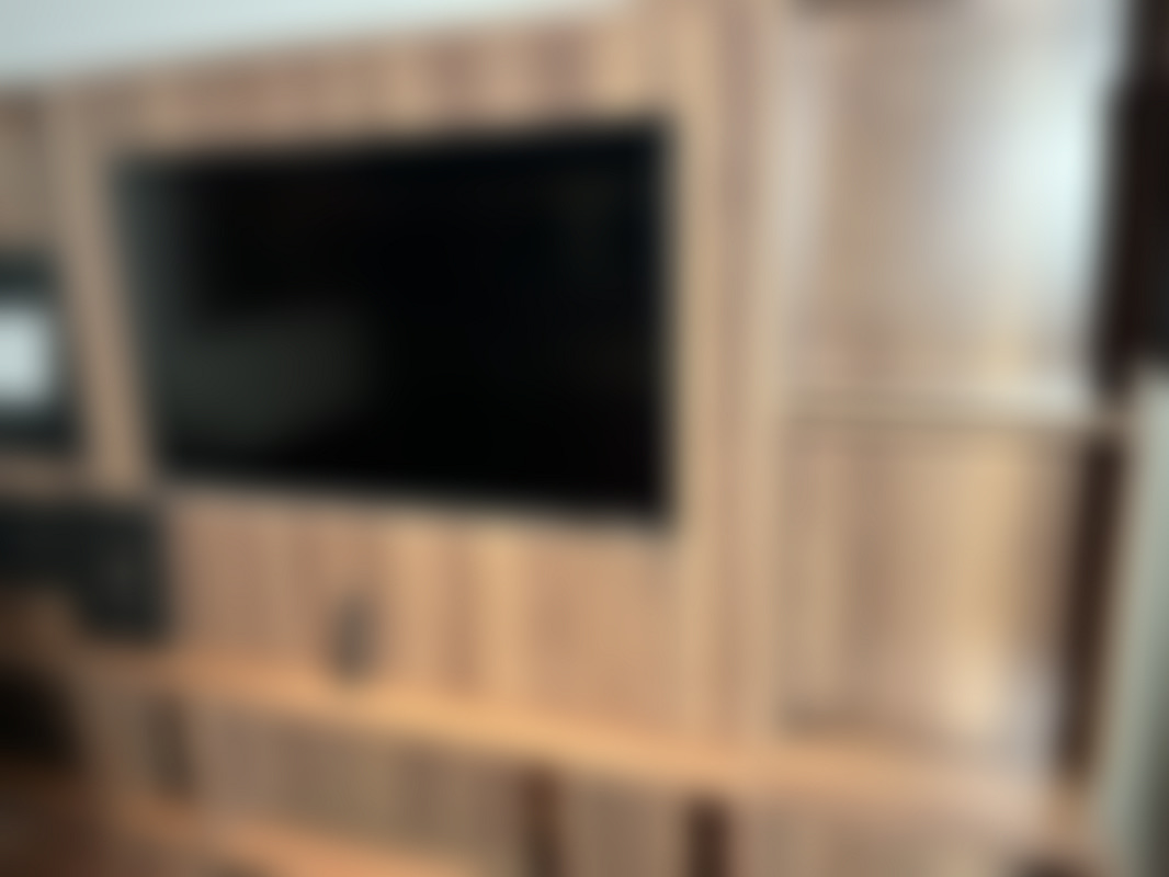 Mediavägg bredd: 210cm, höjd: 193cm, djup:25cm, hållare för iPad Pro 11” och iPad mini.