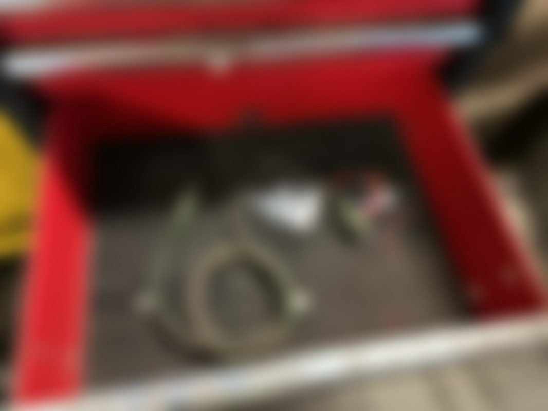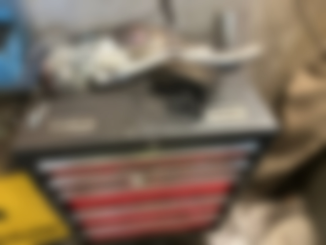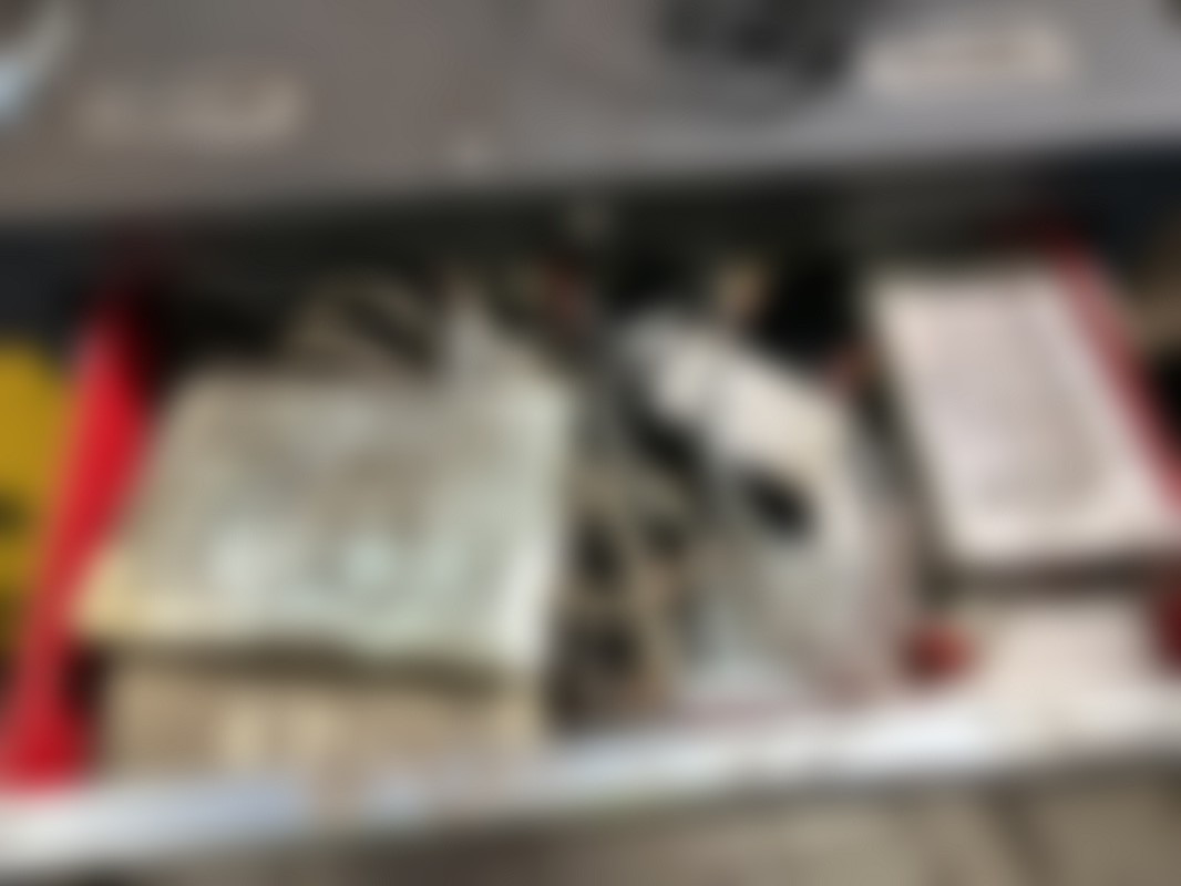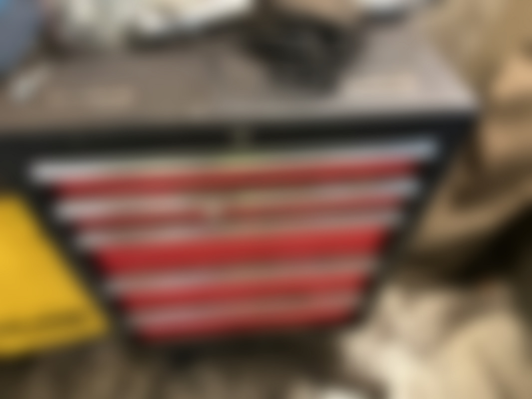 Not allowedRött och svart verktygsskåp med sex lådor. På topp och i lådorna ligger kablar, elektronikdelar och olika verktyg i lådorna ingår.