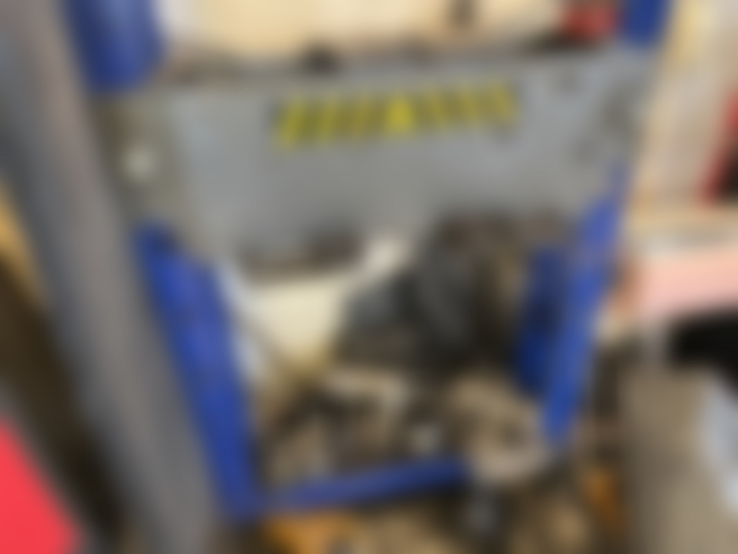 Not allowed50 ton hydraulisk press ifrån 2013 modell KPD-50N från IDG-Tools AB. Fronten visar tryckmätare och märkning, arbetsyta och följande pressverktyg samt tillbehör syns i bottenhyllan.