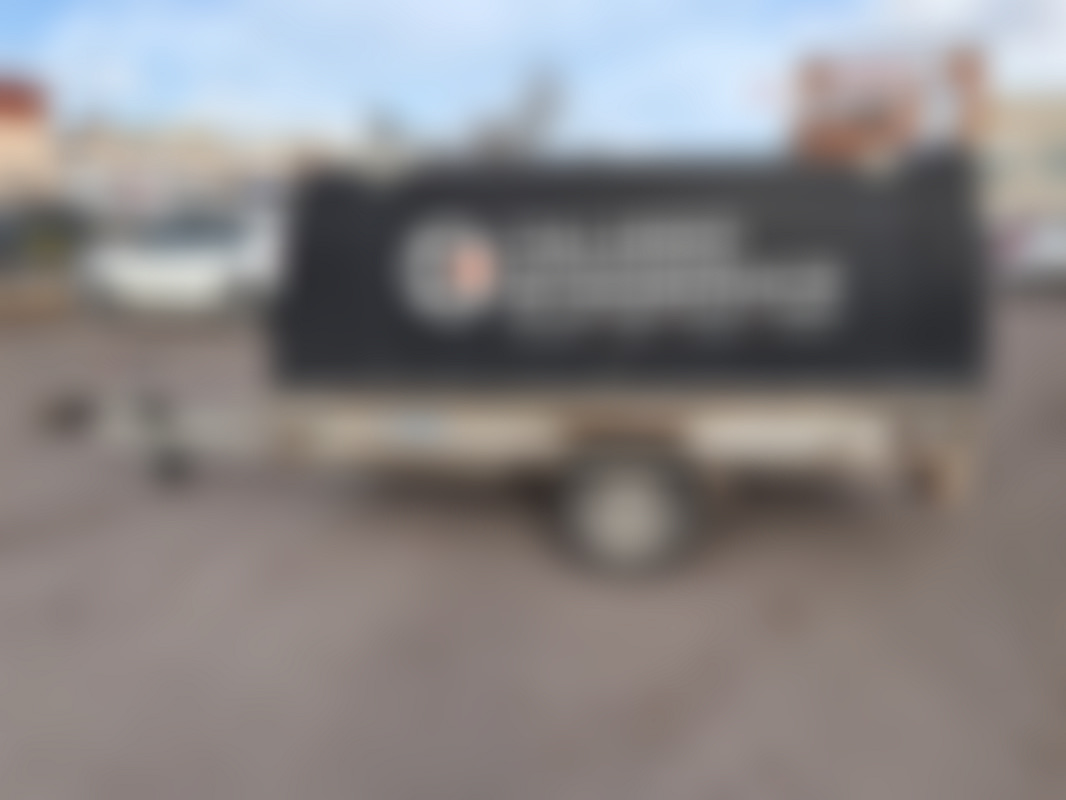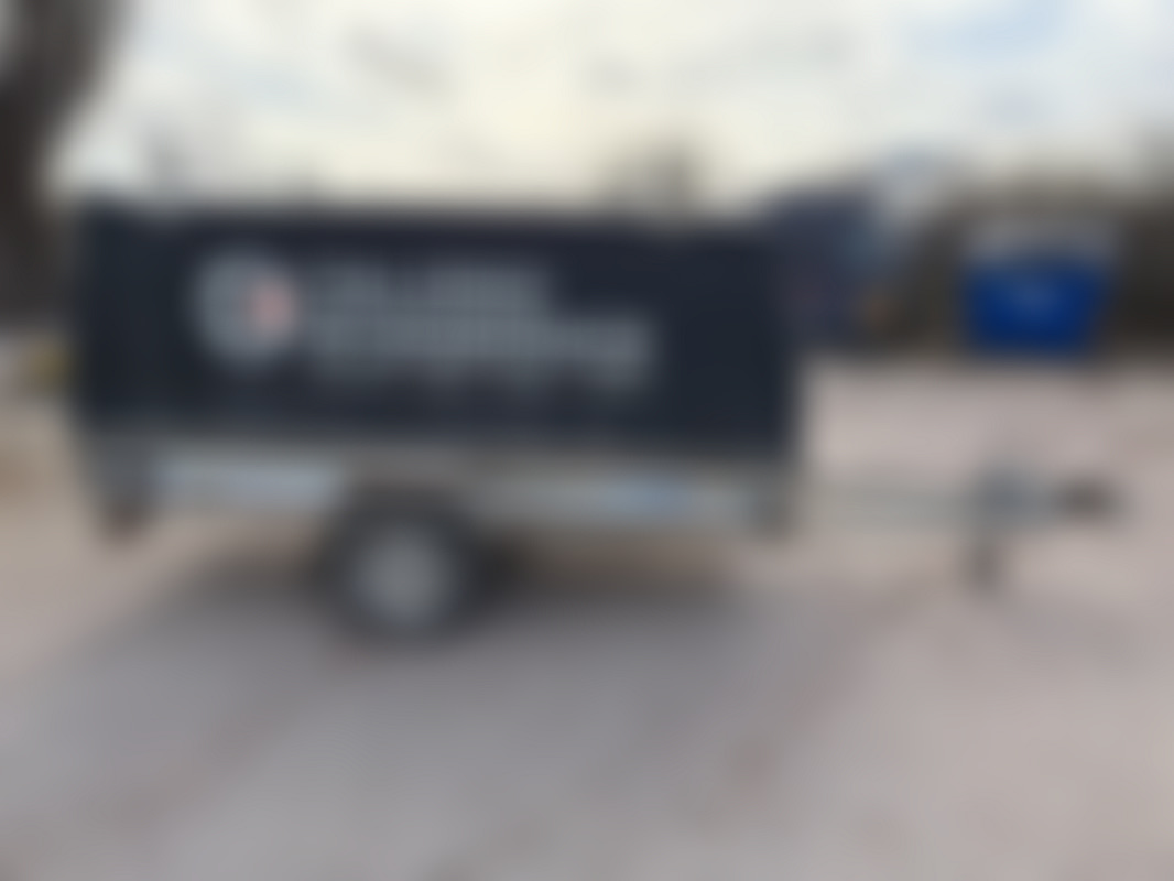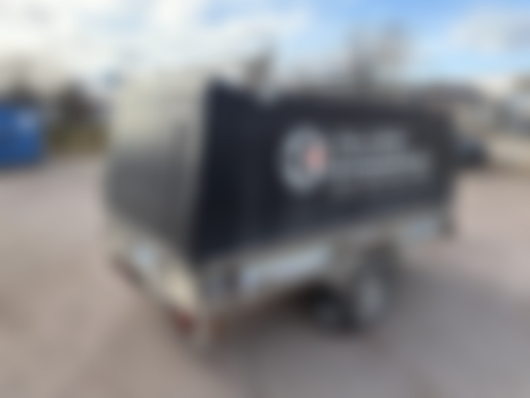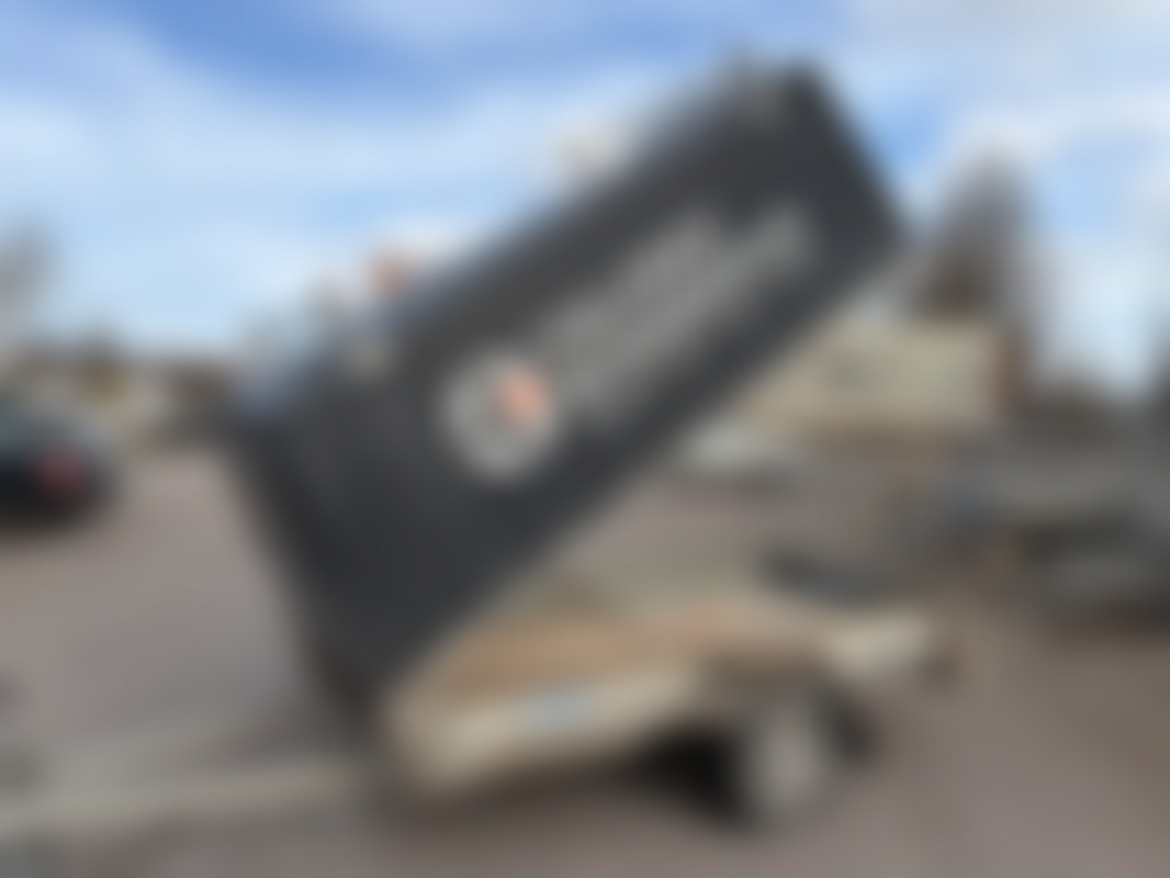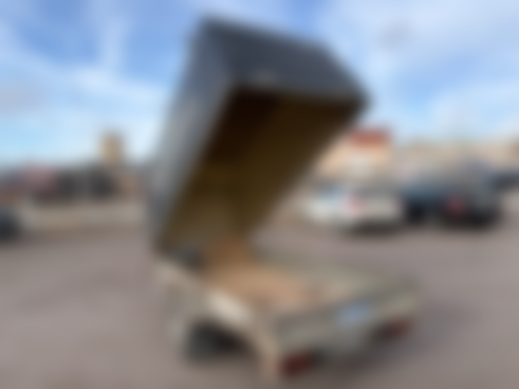 AllowedBromsat och tippbart släp med kåpa och takräcken.