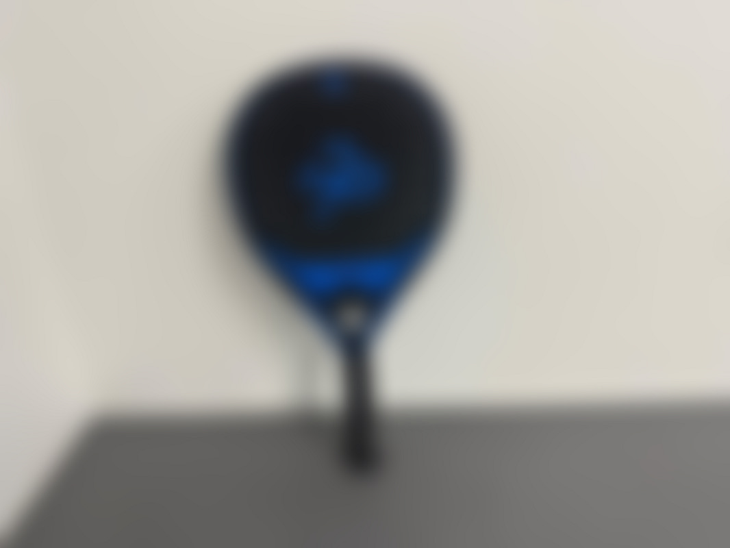 Ett svart och blått padelracket, modell Capricorn 2021, nytt men har några repor på slagytan.