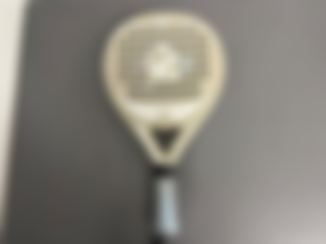 Ett beiget padelracket, modell Libra, tidigare använt men utan större slitage.