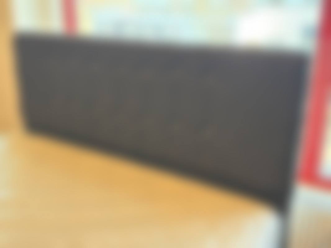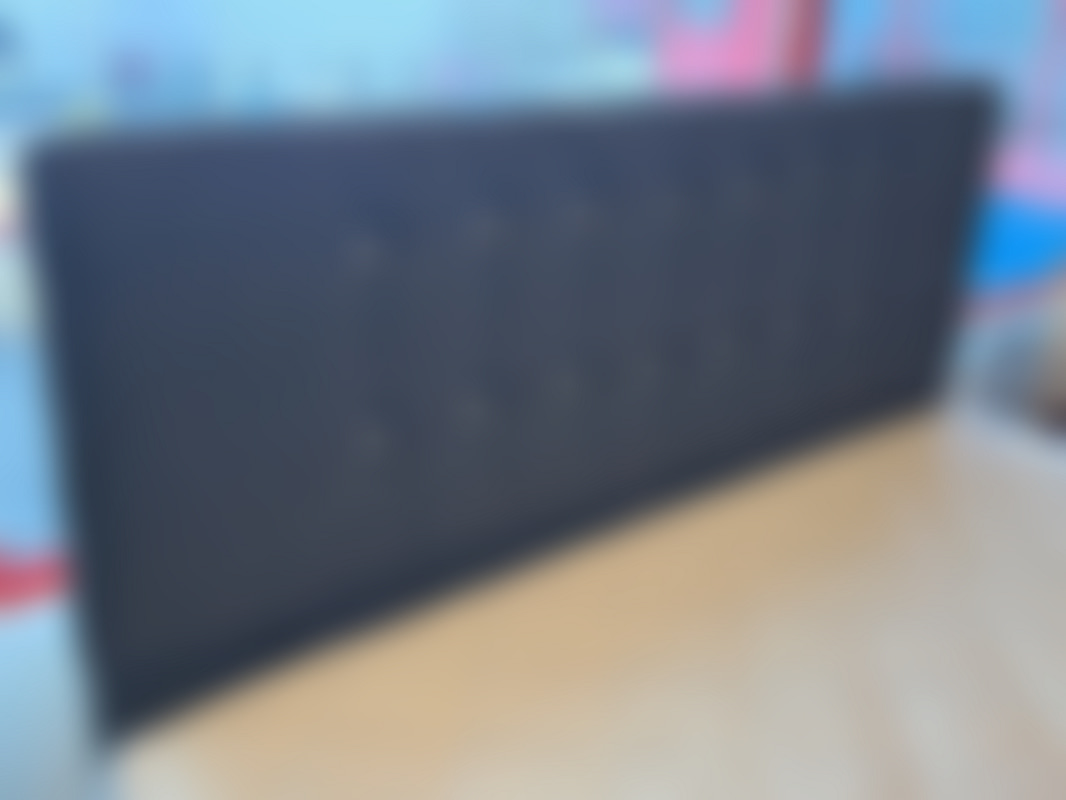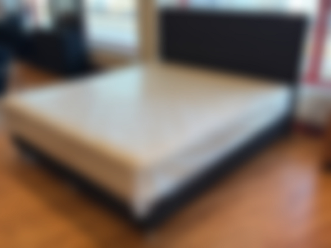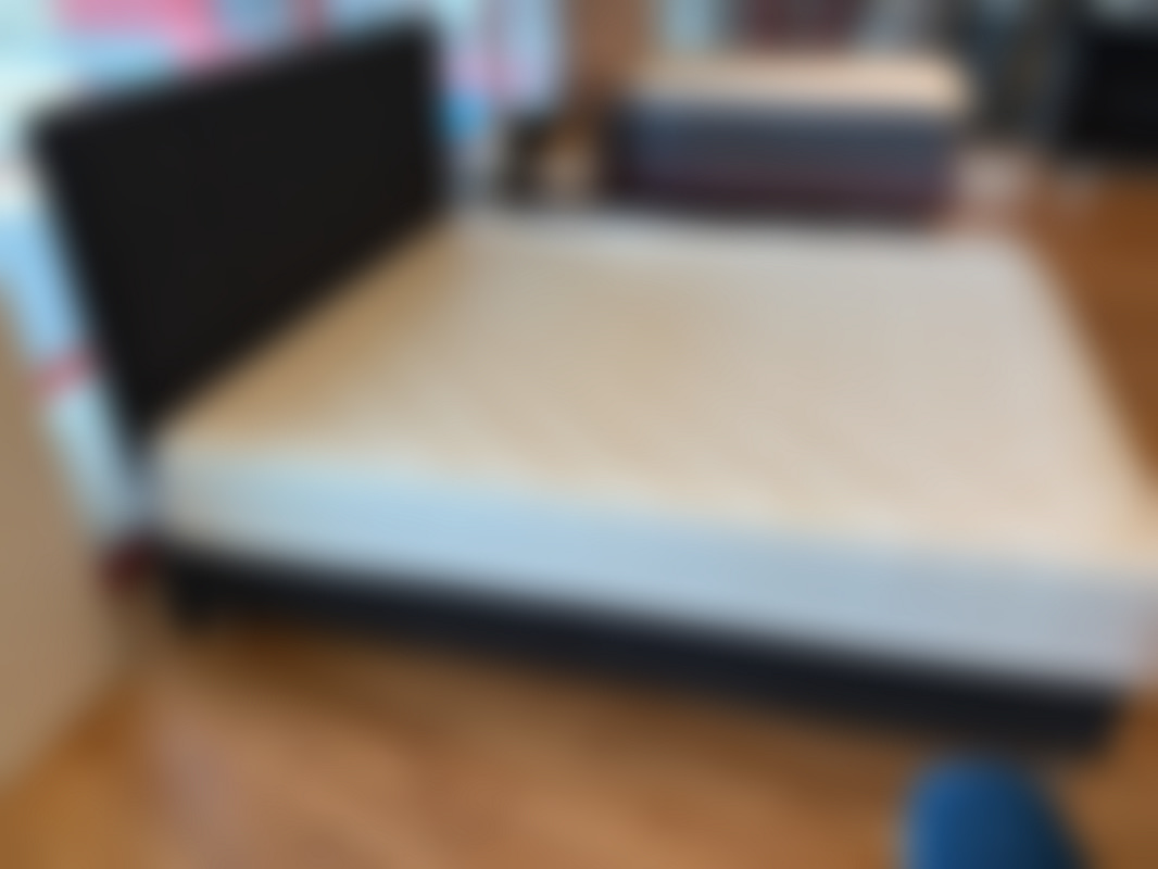 Not allowedSäng 180x200 cm i mörkgrått grovt tyg med detaljer.