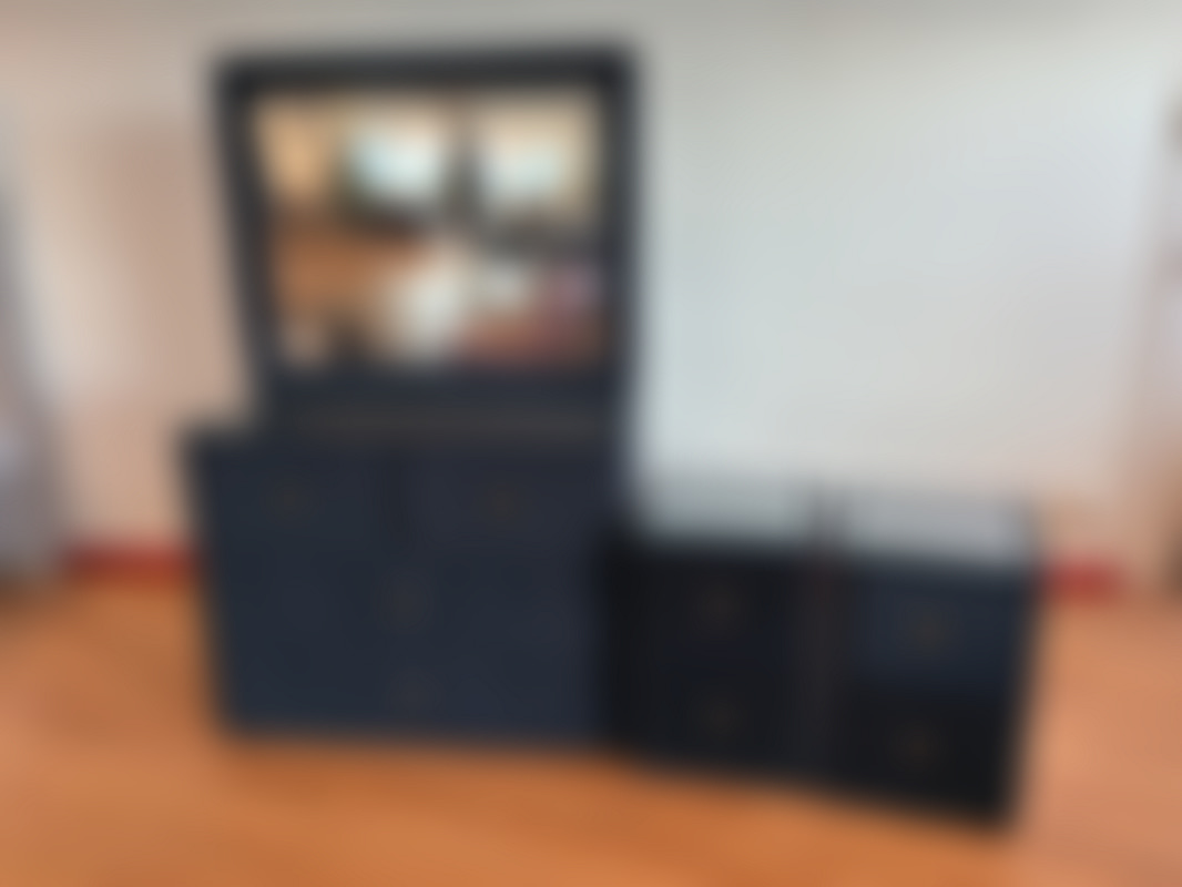 Byrå med spegel samt 2 st sängbord, svart sammet