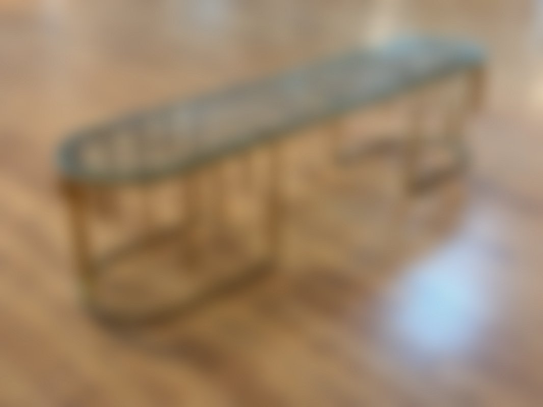 Not allowedTV-bänk/ sidobänk i guldfärgad metall med glasskiva.