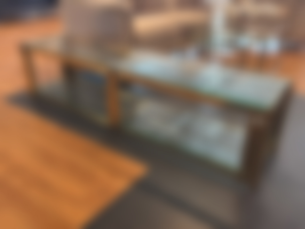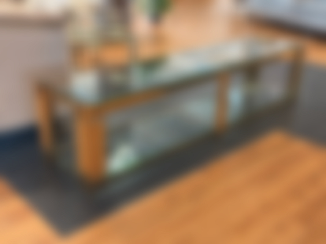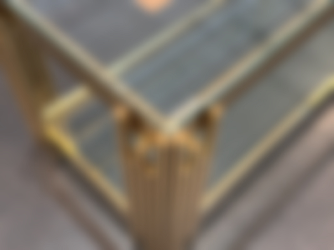 Not allowedTV-bänk/ sidobänk i guldfärgad metall och skivor i klarglas.
