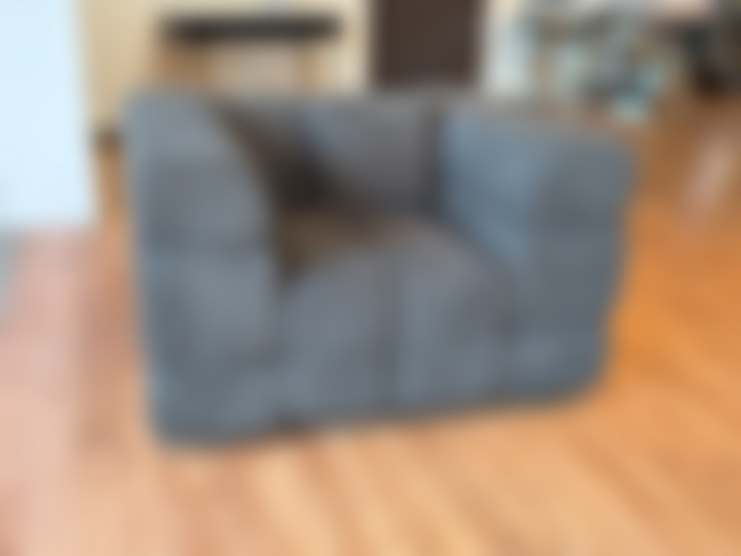 Fåtölj i grått teddytyg