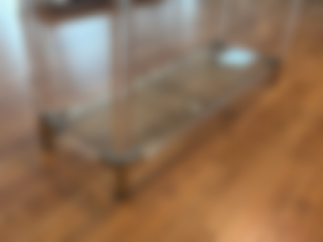 Soffbord i två delar, gulmetall med glasskiva