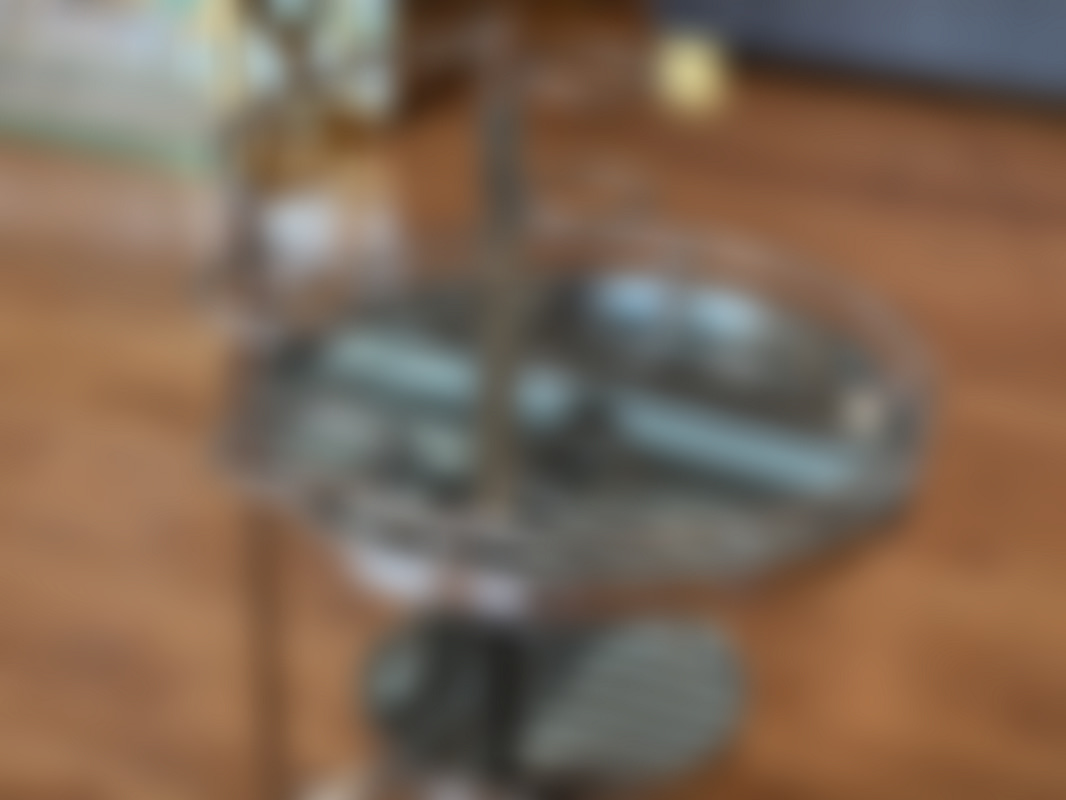 Soffbord i två delar, gulmetall med glasskiva