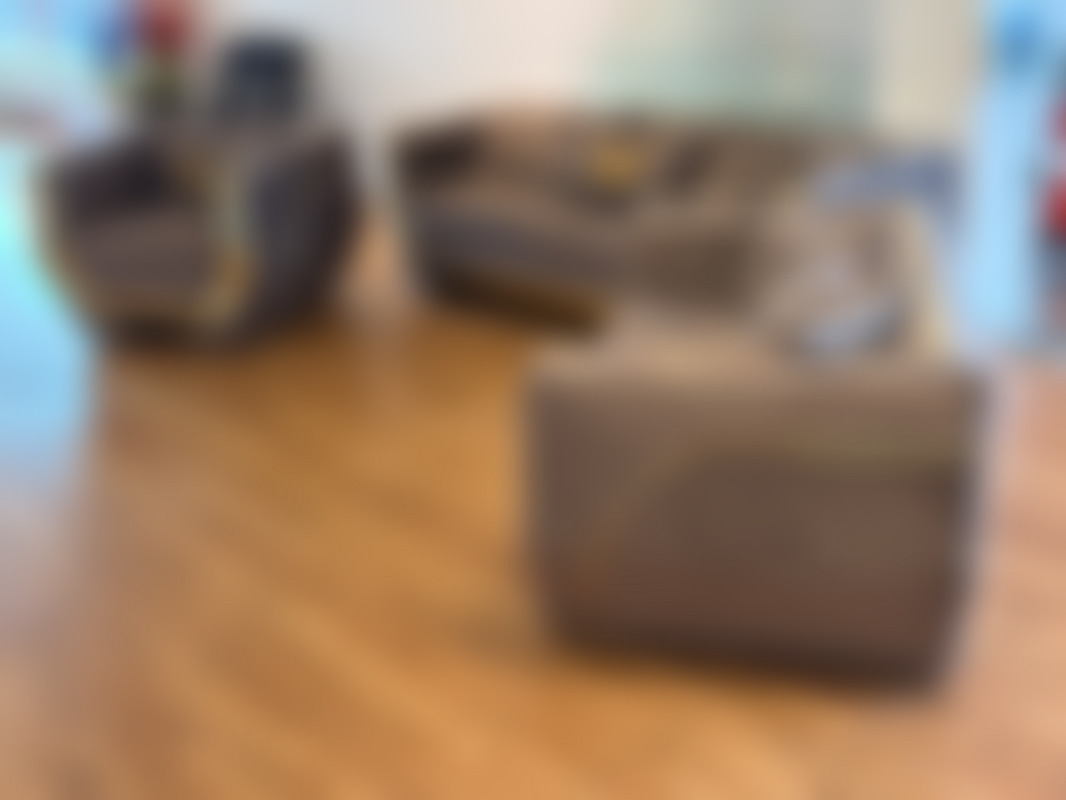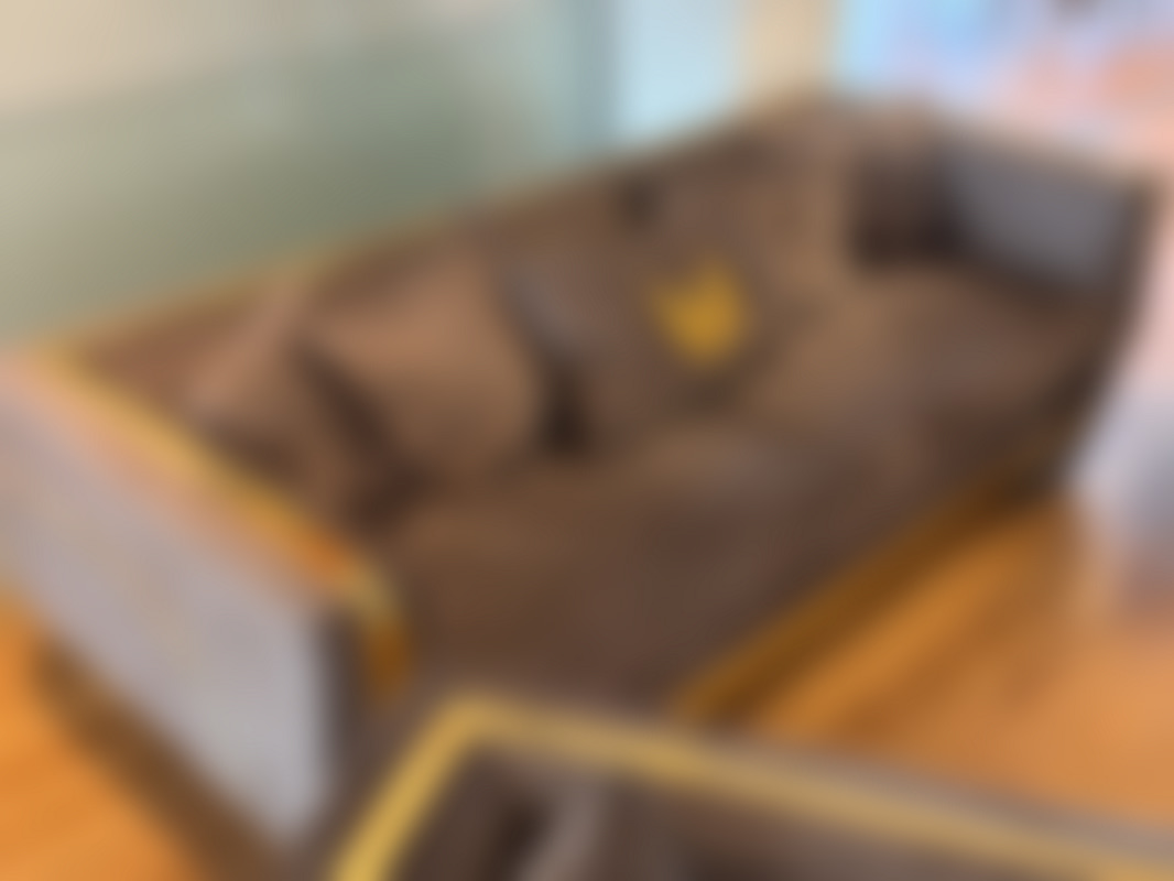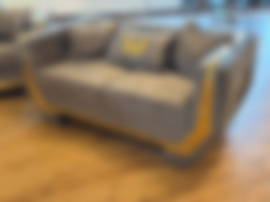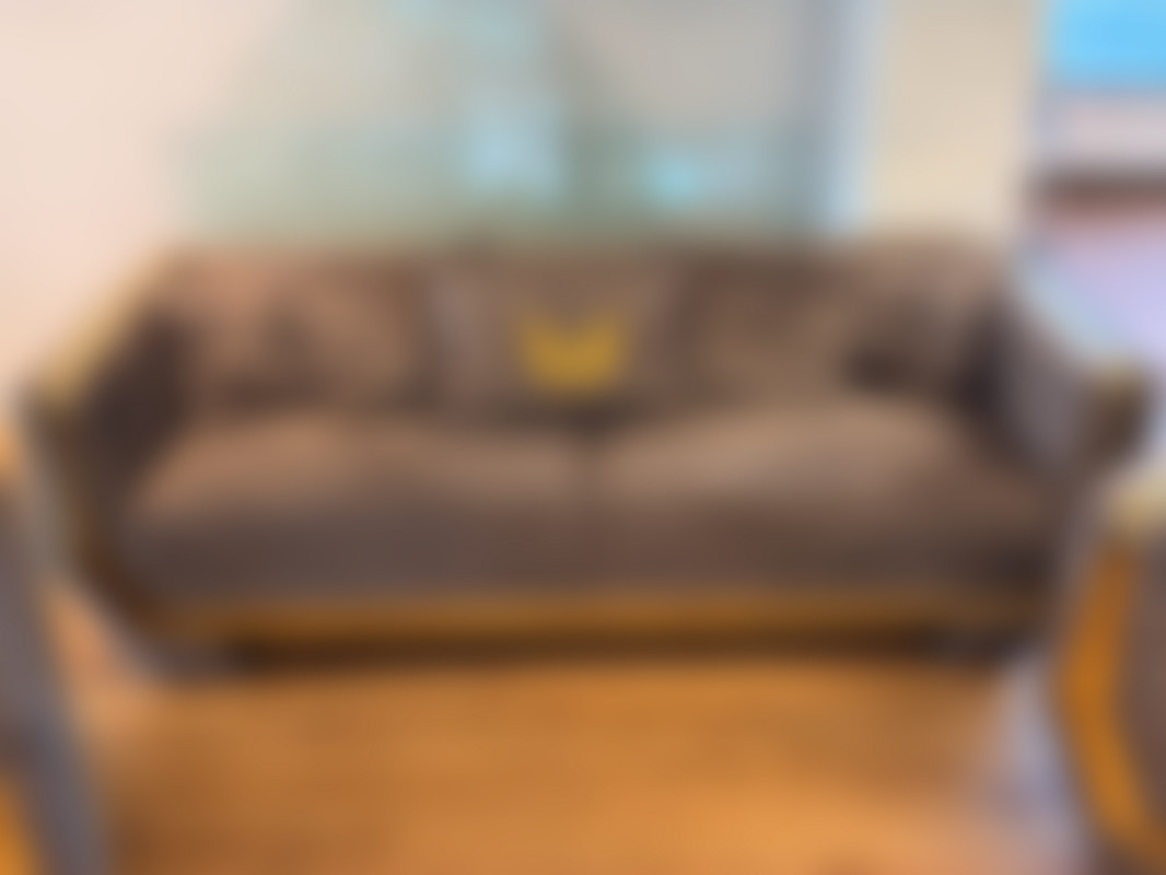 Not allowedSoffgrupp i 3 delar i grå sammet och guldfärgade detaljer.