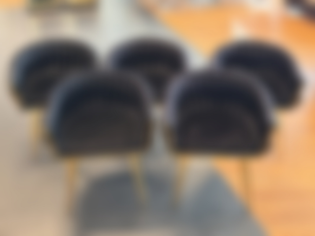 5 st stolar, svart sammet/ guld