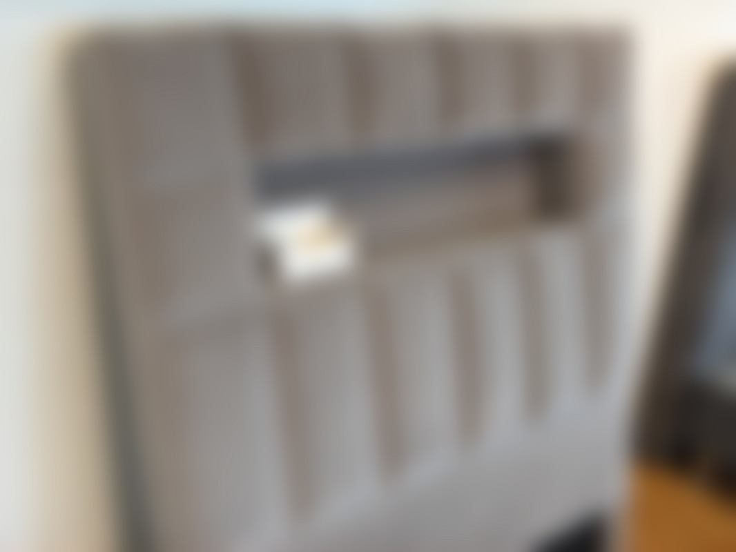 Not allowedSänggavel i grå sammet.