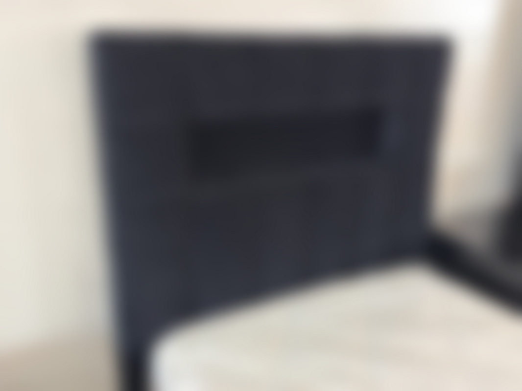 Not allowedSäng med sänggavel i svart sammet med ben i guldfärgad metall.