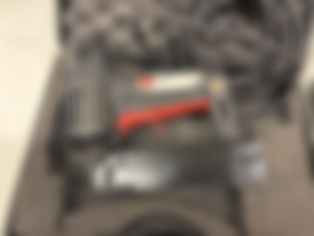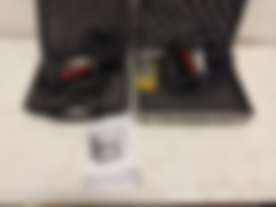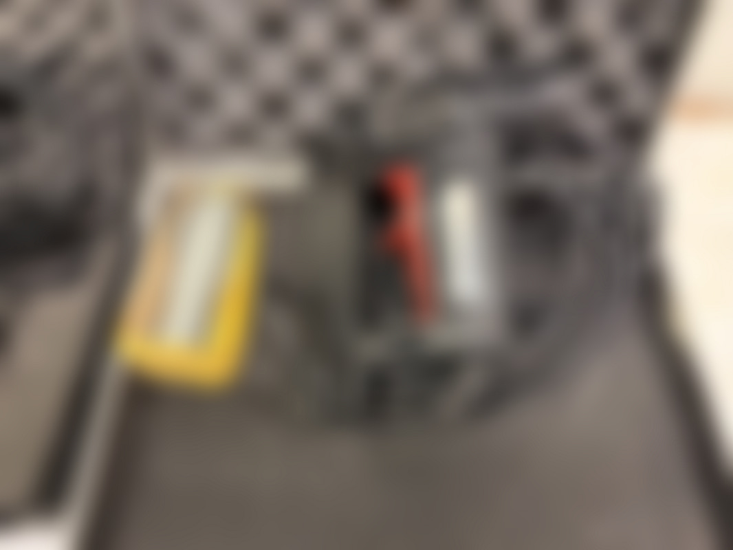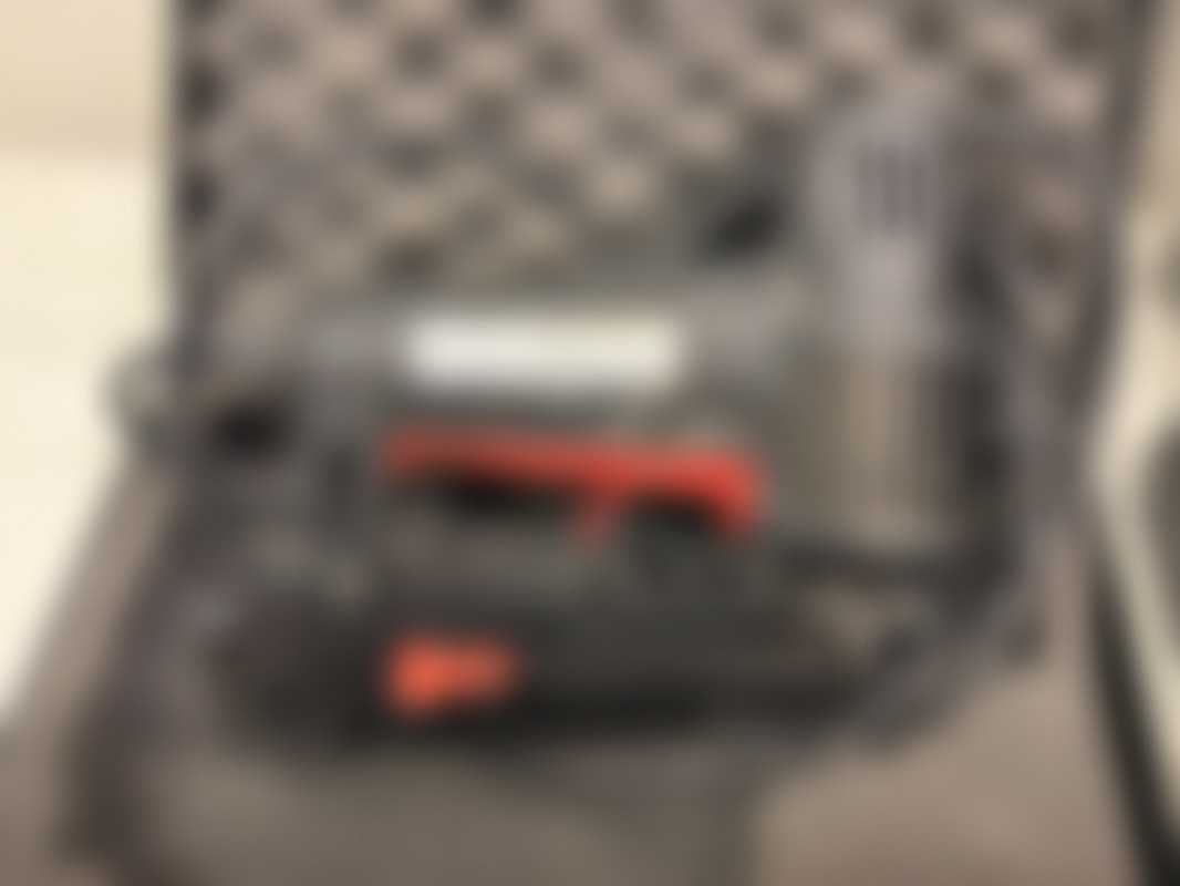 Levereras med en svart väska i hårdplast