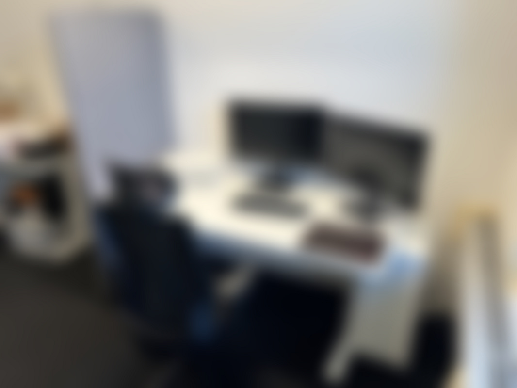 Not allowedKomplett arbetsplats – skrivbord, stol, skärmar m.m.