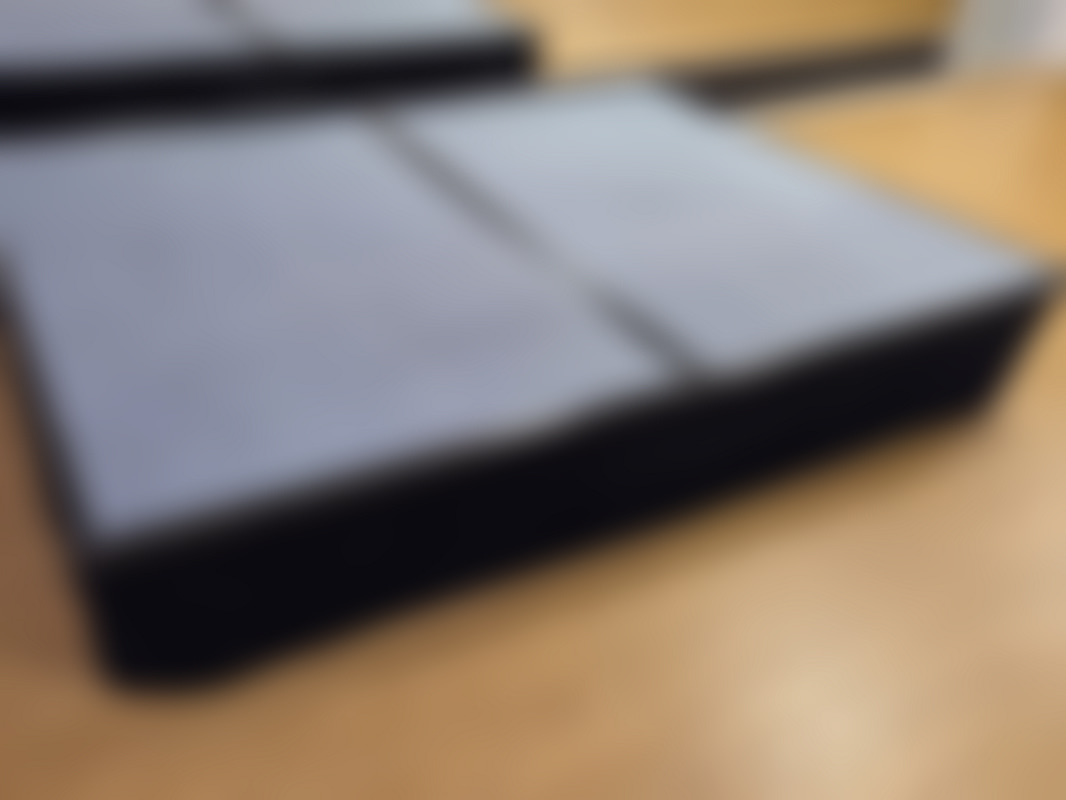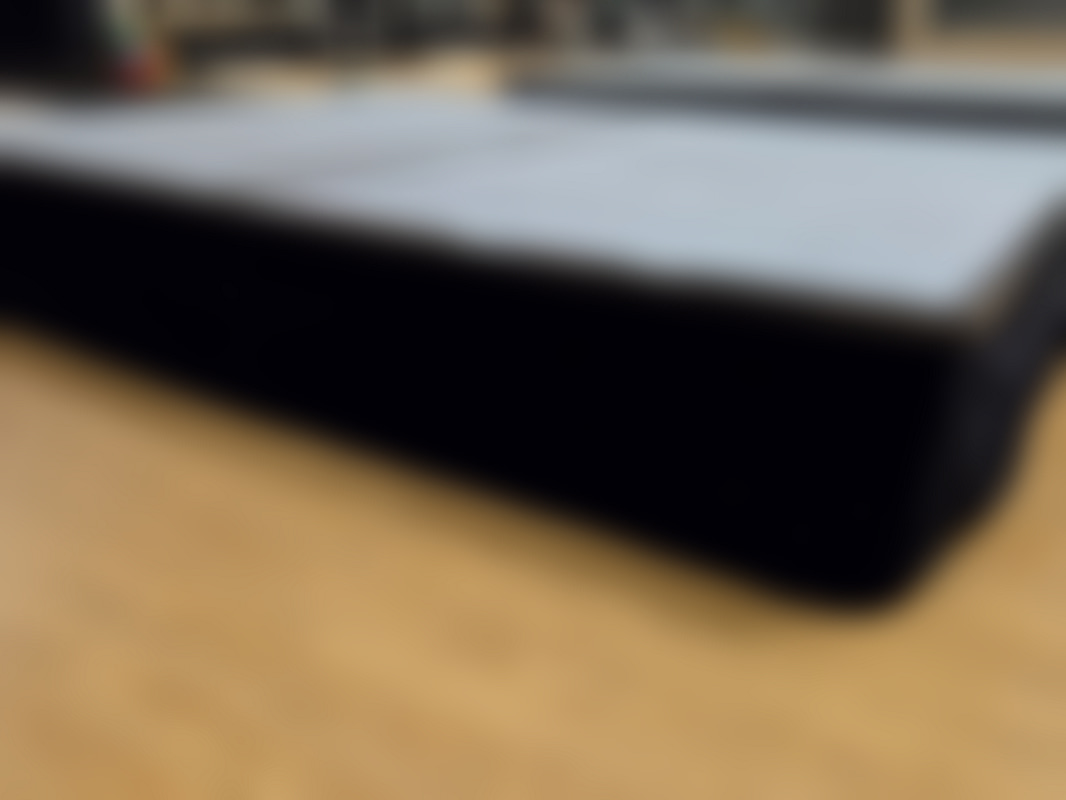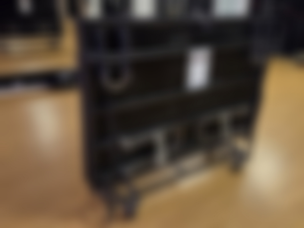 Not allowedScenpodie med grå yta och svart klädd sida. Ram i metall med robust träskiva med heltäckningsmatta.