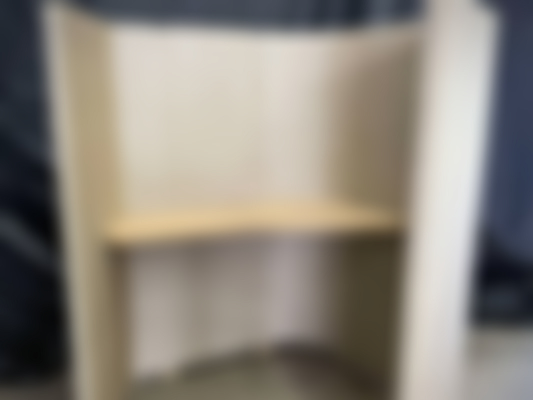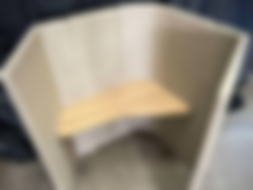 Not allowedChampagnefärgat skrivbordsbås för avskärmat arbete. Textilklädd sittbås i hörnsektion med integrerat träbord i. Modulen består av flera paneler och träbordsdel som passar som liten arbets- eller avkopplingshörna i ett kontor.
