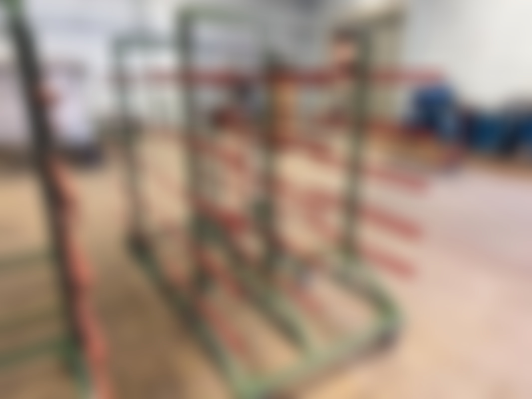 6 st grenställsvagnar – dubbelsidiga – på hjul