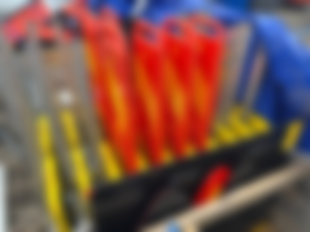 Diverse verktyg, sågar, grensax, lådor, vattenpass mm.