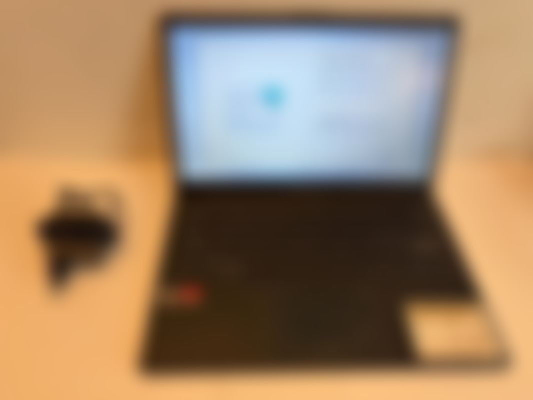 AsusÅterställd laptop med tillhörande laddare.