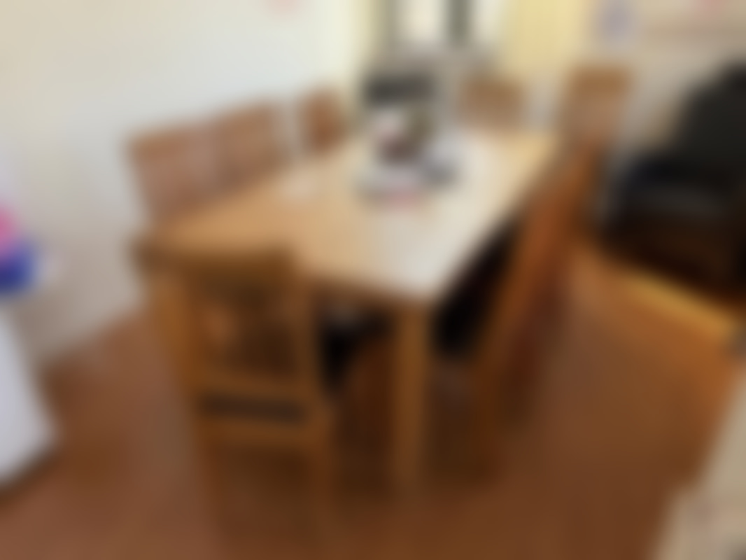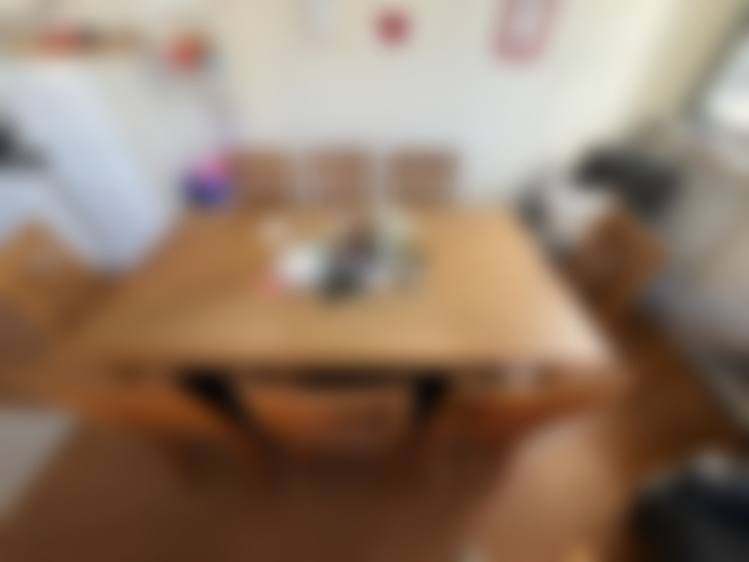 Bord med 8 stolar.