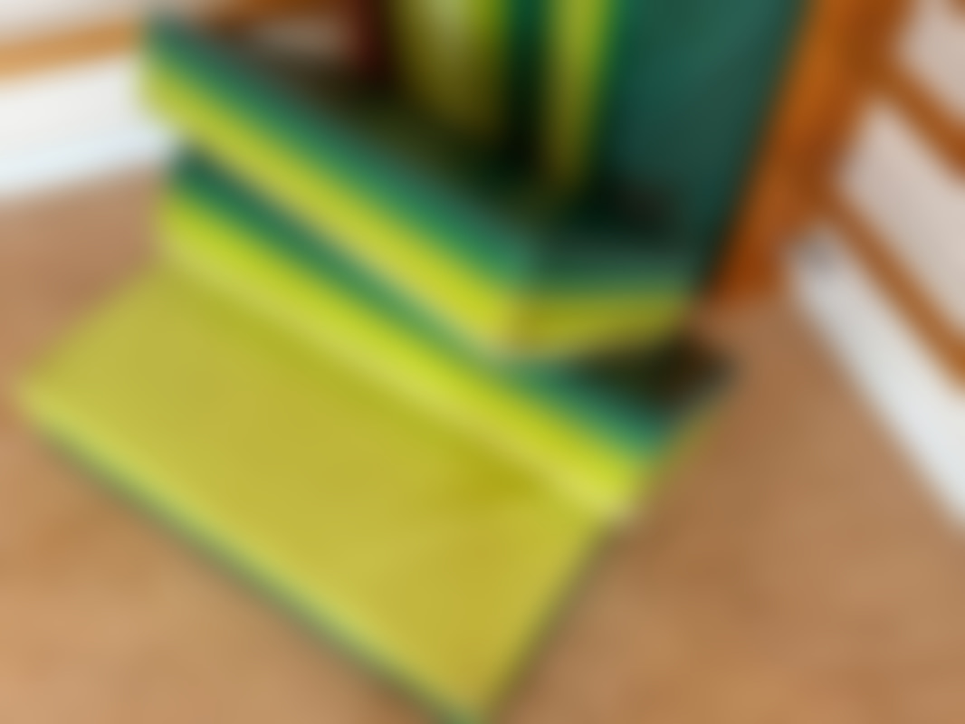 Not allowed18 st gymnastikmatta i grön och gul.