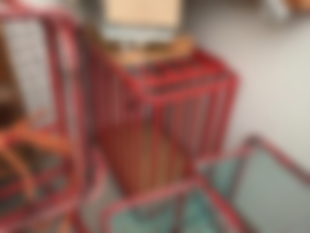 Bollvagn, röd metall, 2 st, med bollar