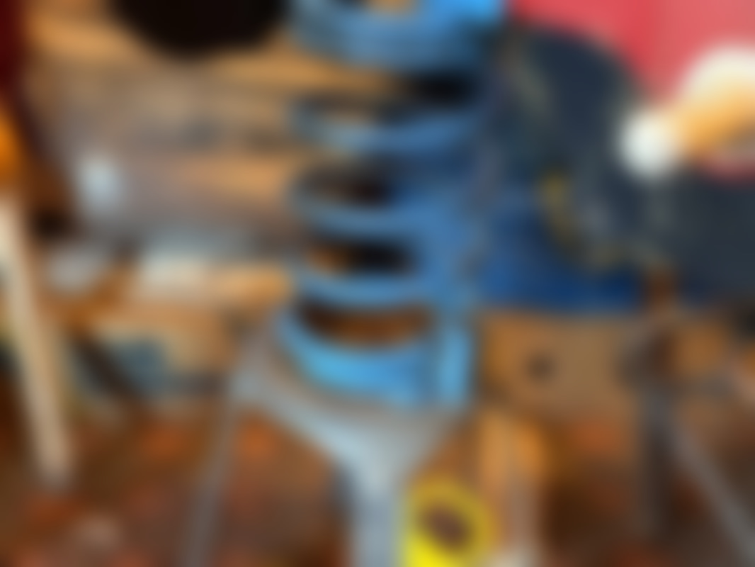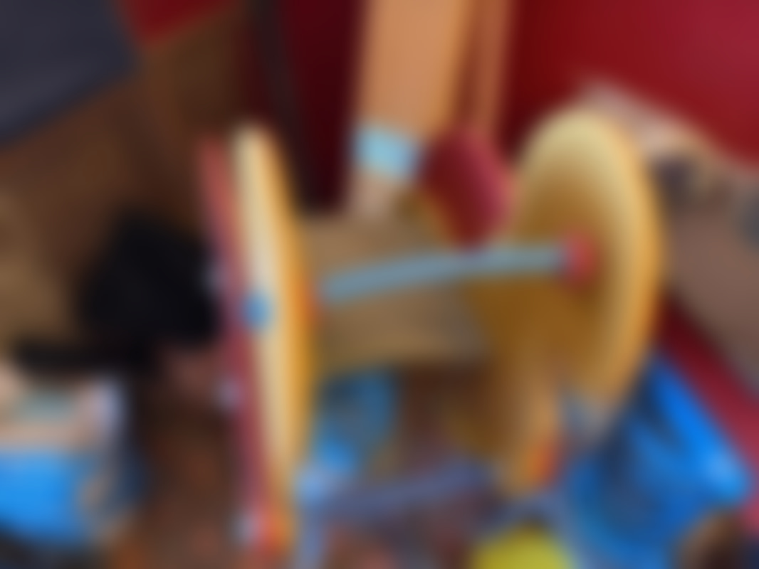 Not allowed2 st fjädergungor i trä, metall och plast med färgsättning i rött, gult, blått och svart.