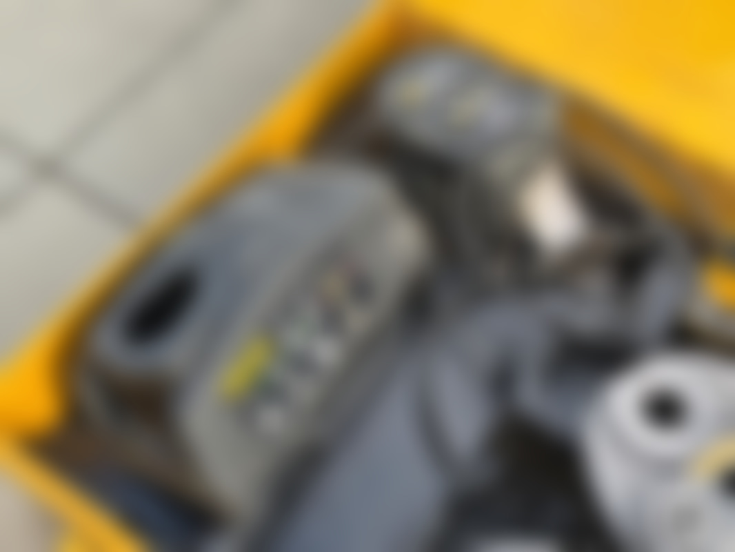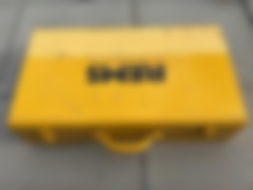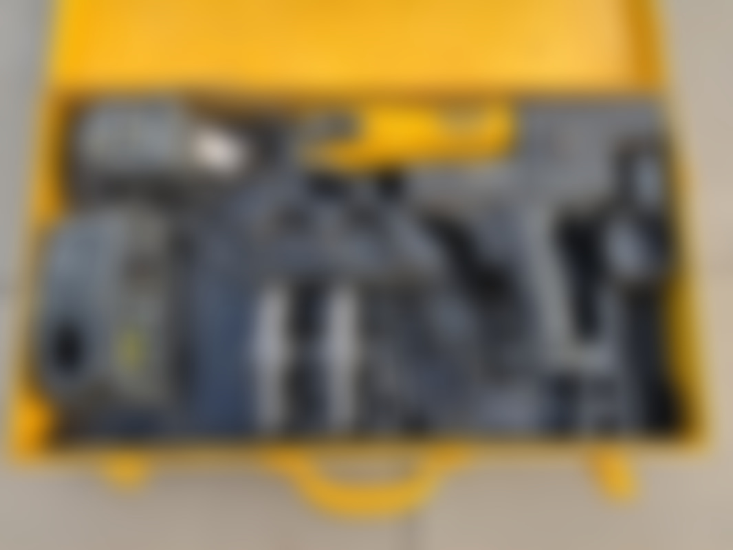 MiniBatteridrivet pressverktyg från REMS för pressning av rörkopplingar. Setet ligger i metallväska och innehåller pressmaskin, laddare, batterier och pressbackar V12 och V15. Märkt 14,4 V.