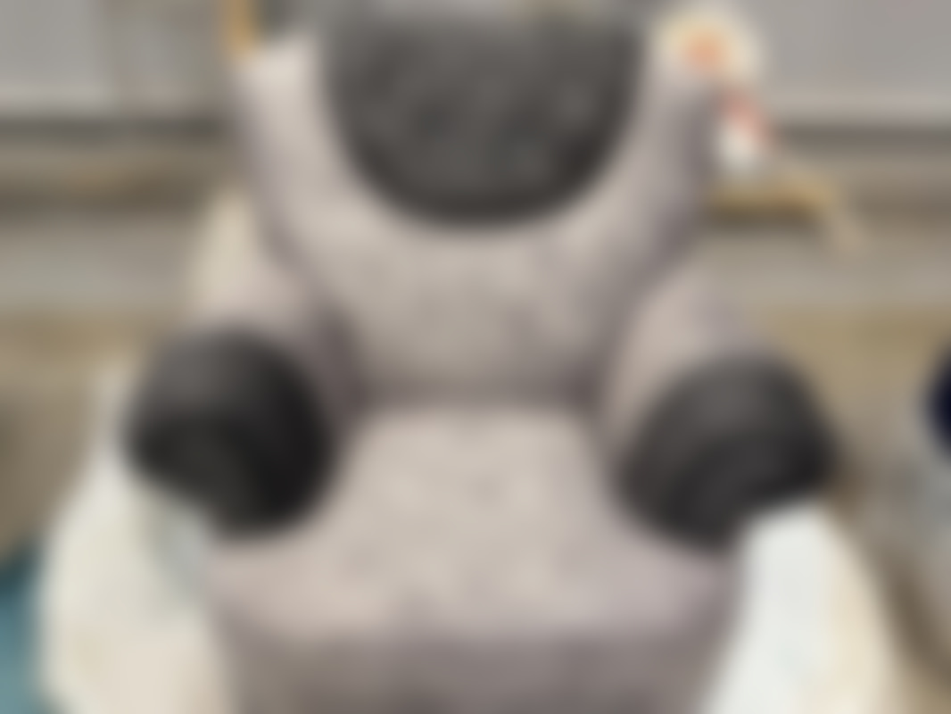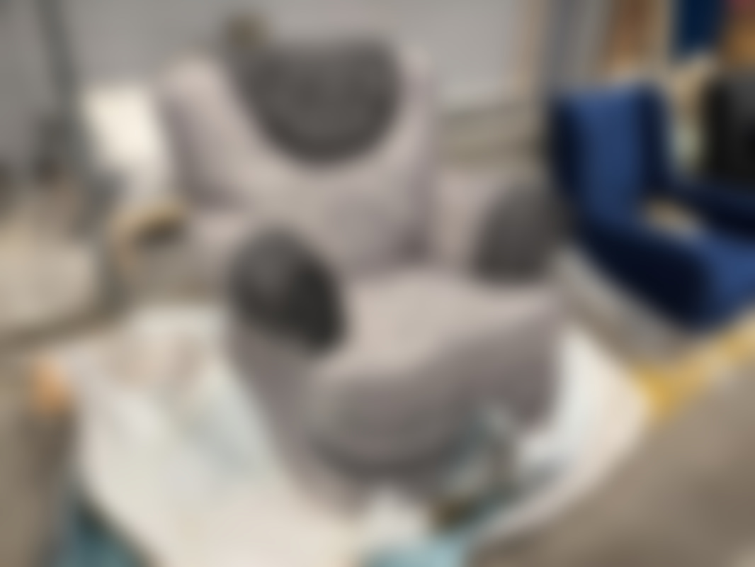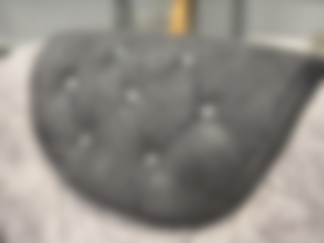Not allowedFåtölj i grå sammet med detaljer.