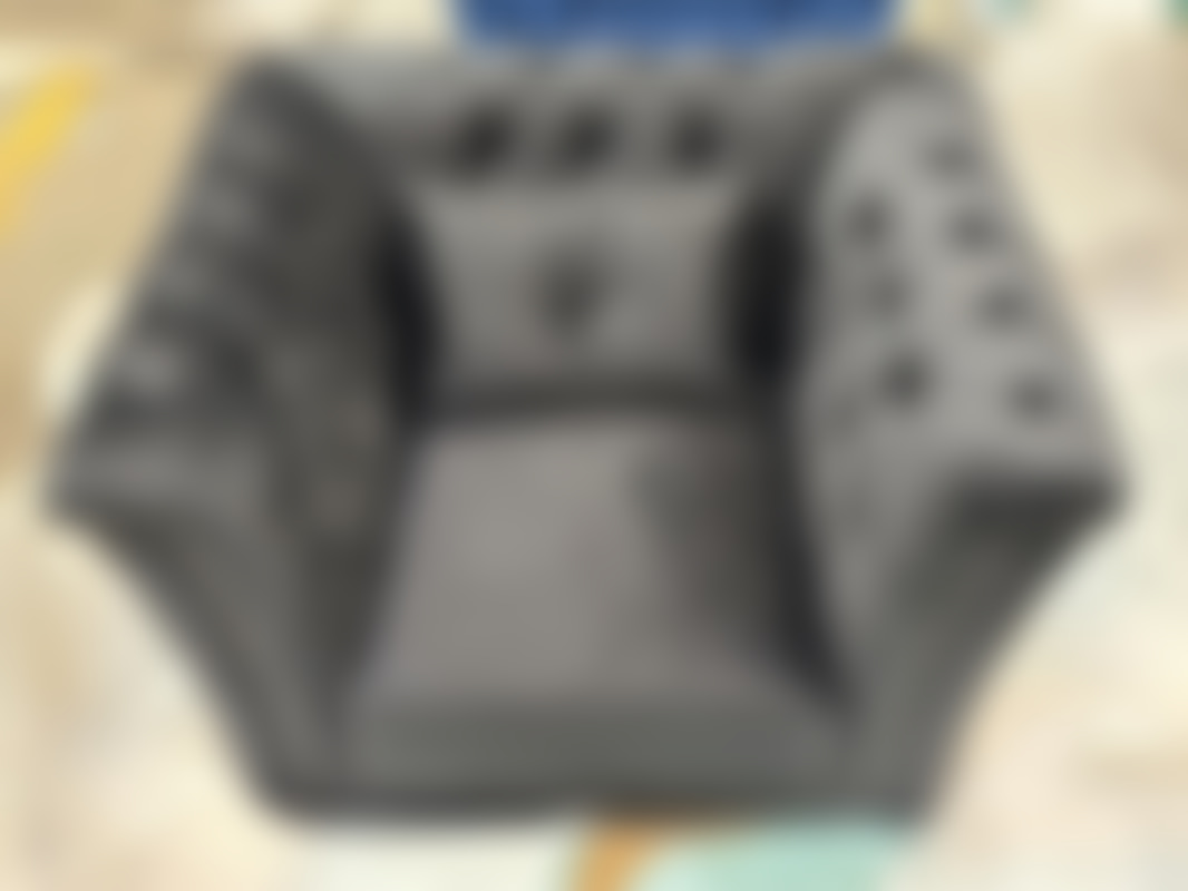 Not allowedFåtölj i svart sammet med nitade detaljer.