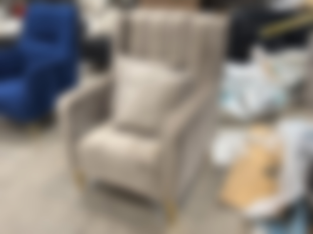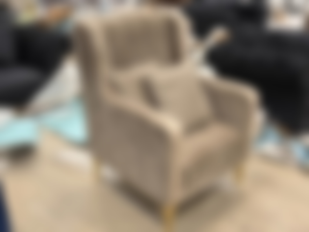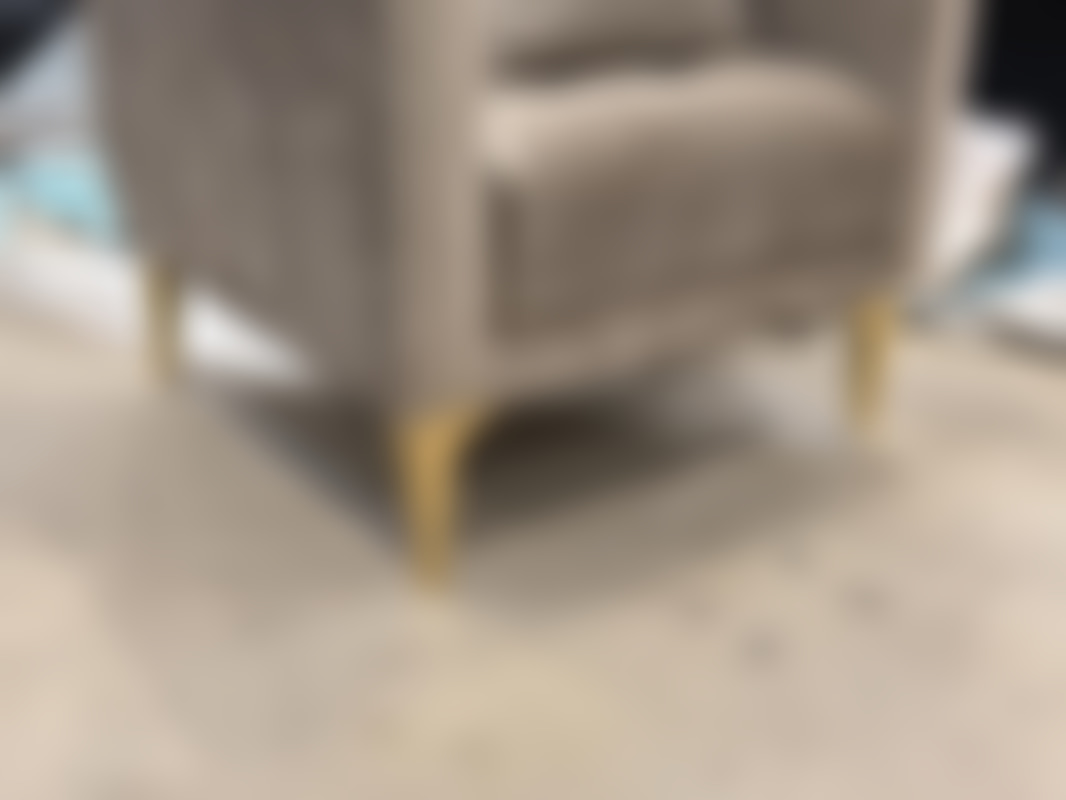 Not allowedFåtölj i brun sammet med ben i guldfärgad metall.