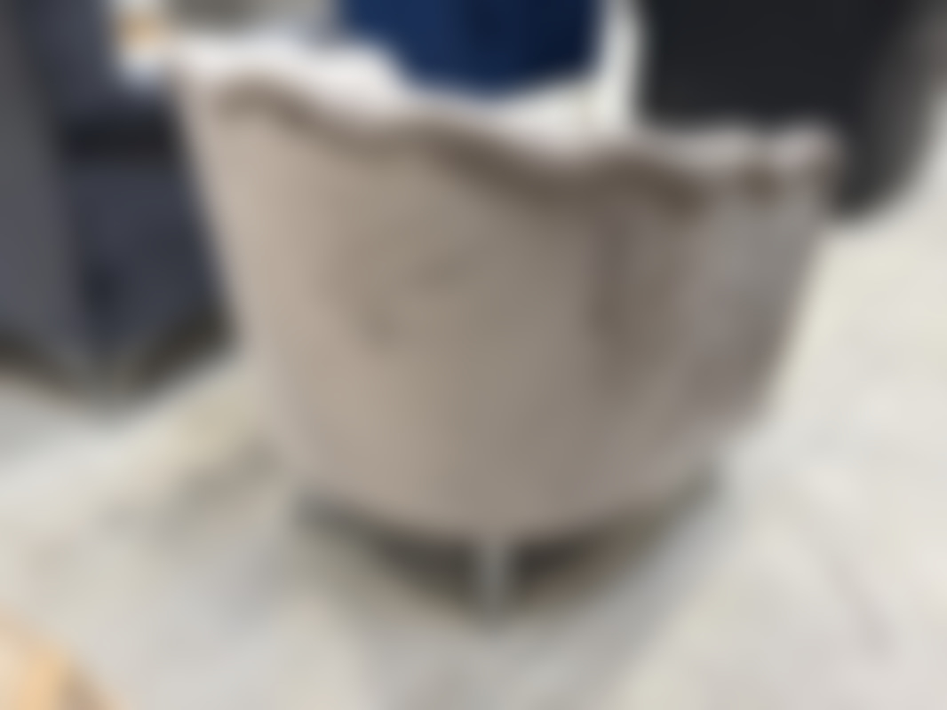 Not allowedFåtölj, grå sammet med ben i metall.