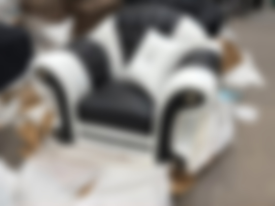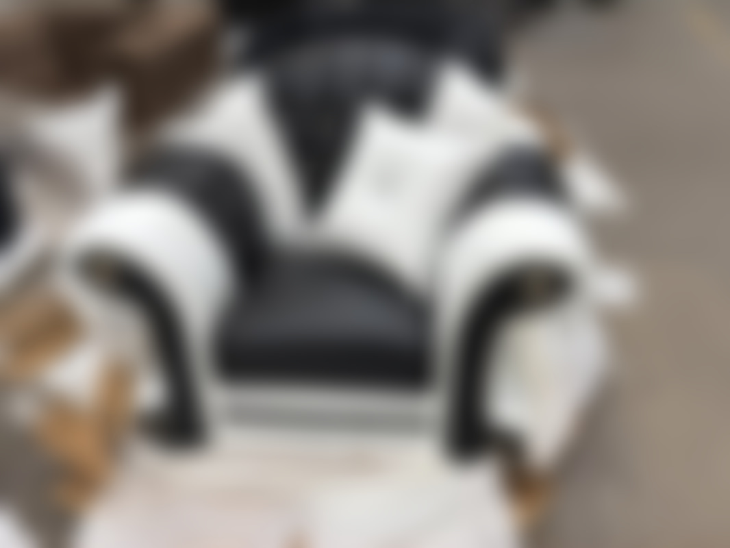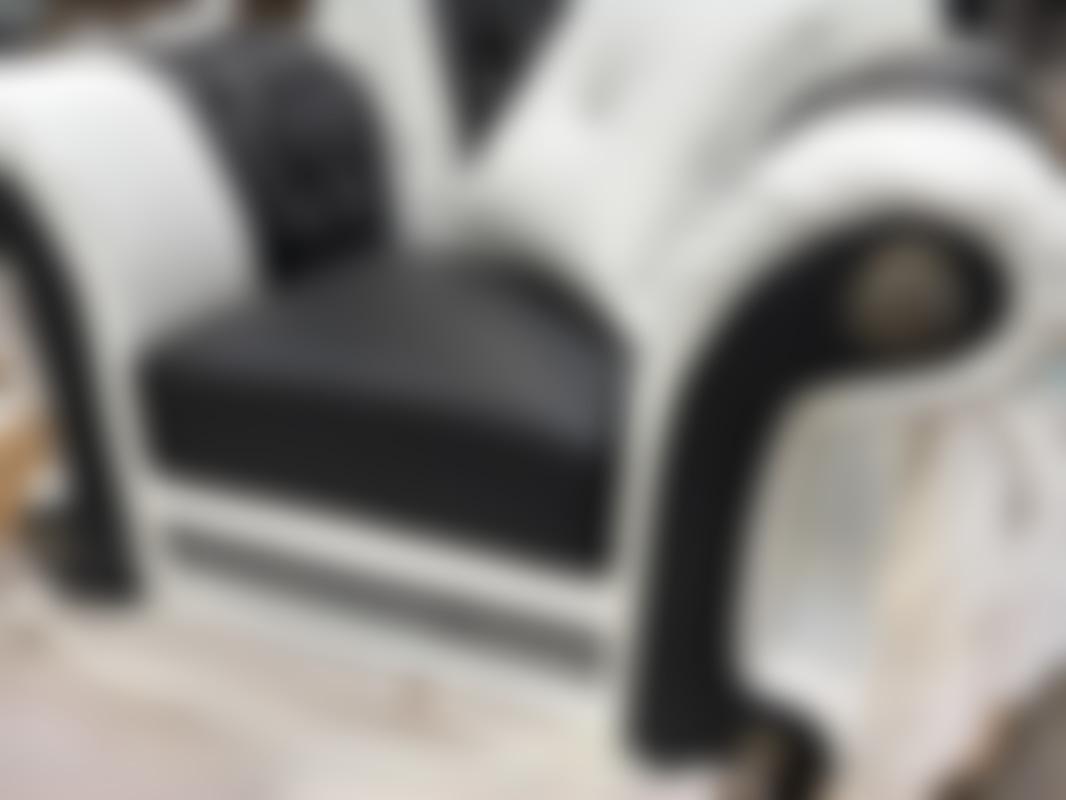 Not allowedFåtölj i svart/ vitt konstläder med detaljer.