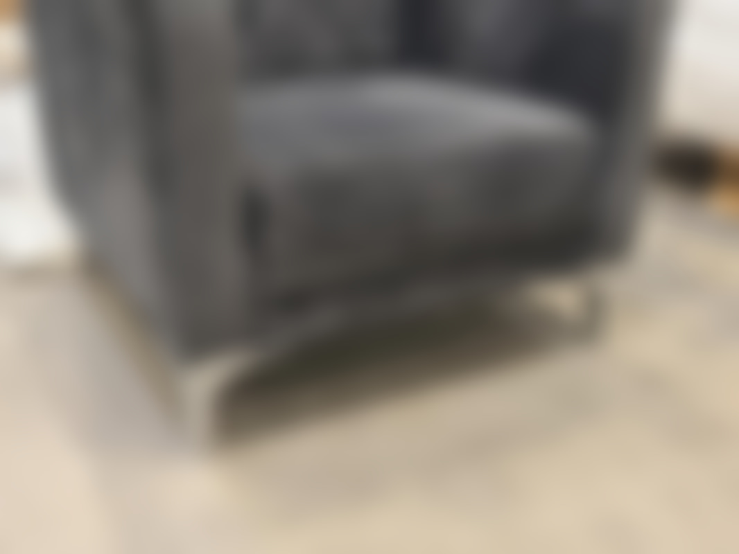 Not allowedFåtölj i grå sammet med ben i metall.