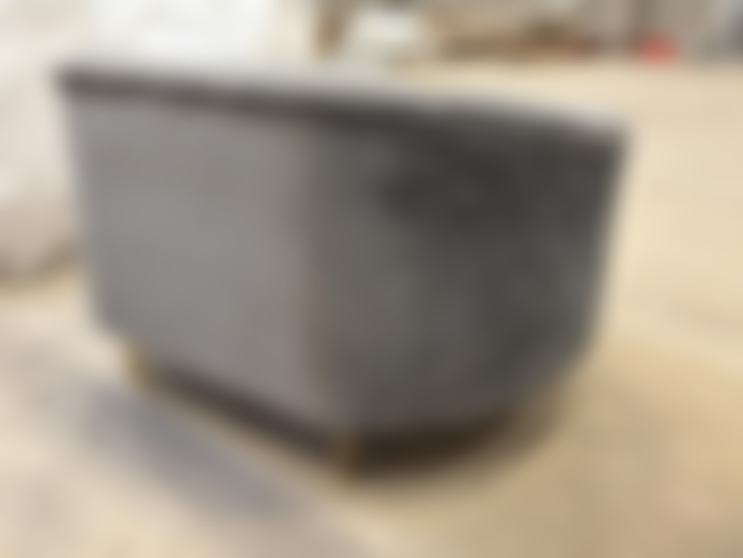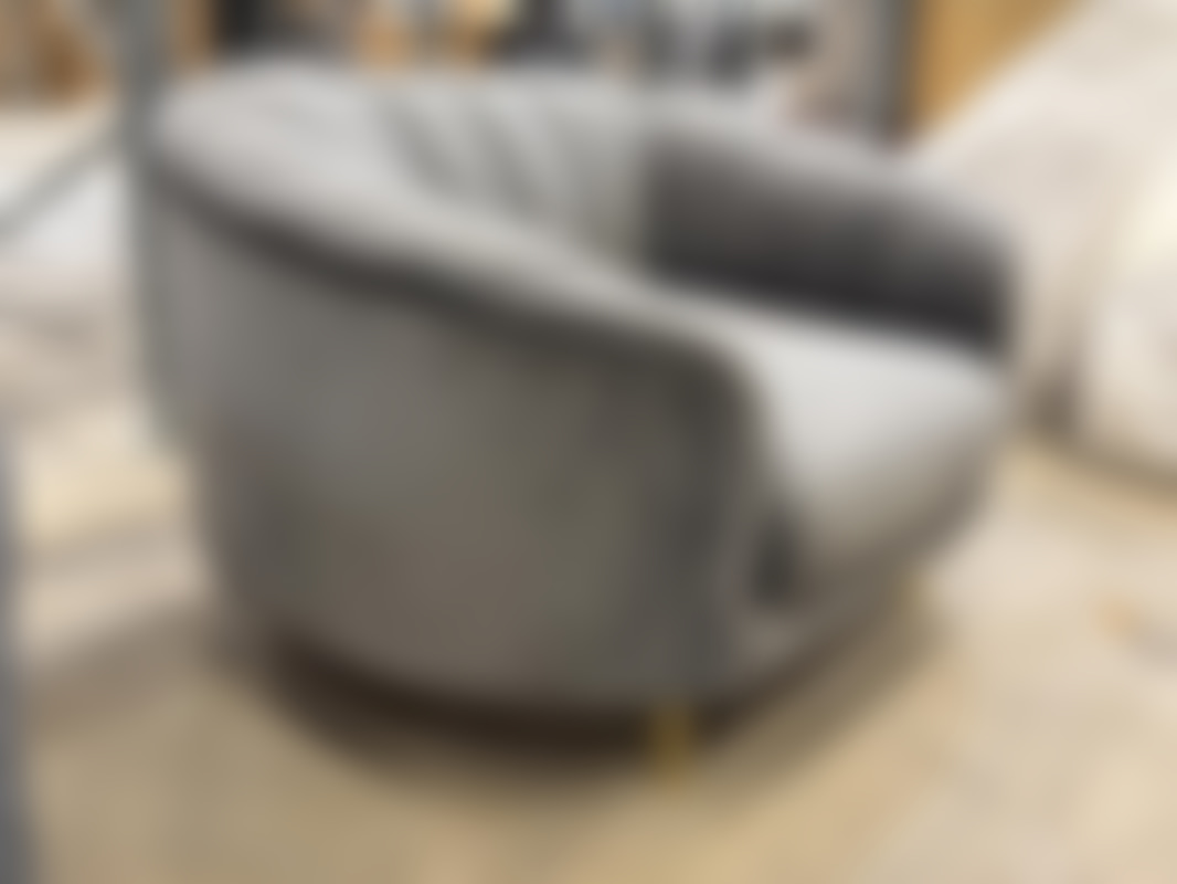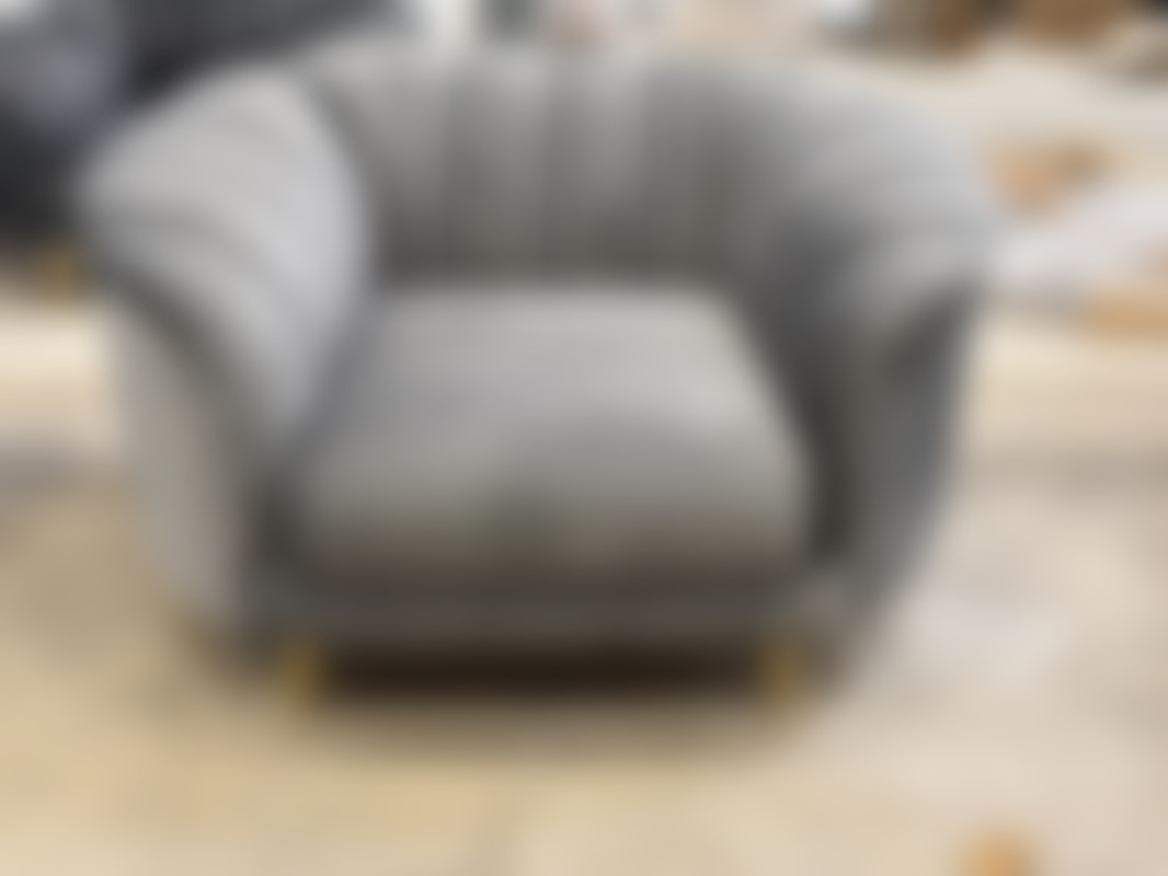 Not allowedFåtölj i grå sammet med guldfärgade ben.