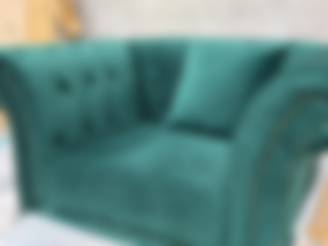 Not allowedFåtölj i grön sammet med nitade detaljer.