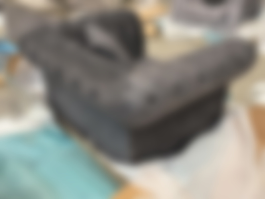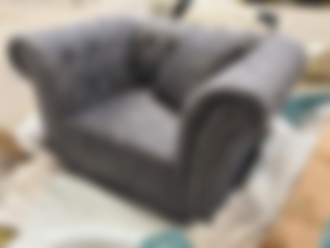 Not allowedFåtölj i mörkgrå sammet med nitade detaljer.