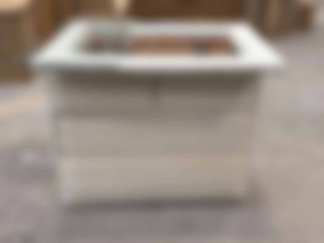 Med glasskiva för toppen samt spegel.