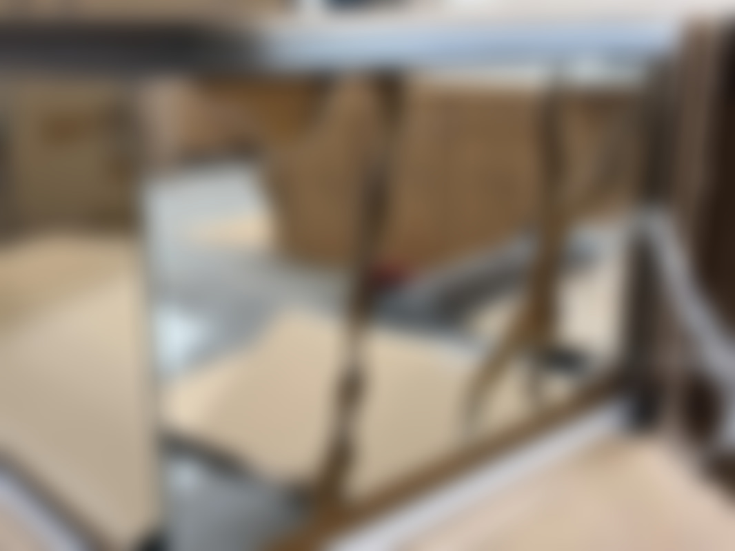 Not allowedSoffbord i spegelglas med detaljer.