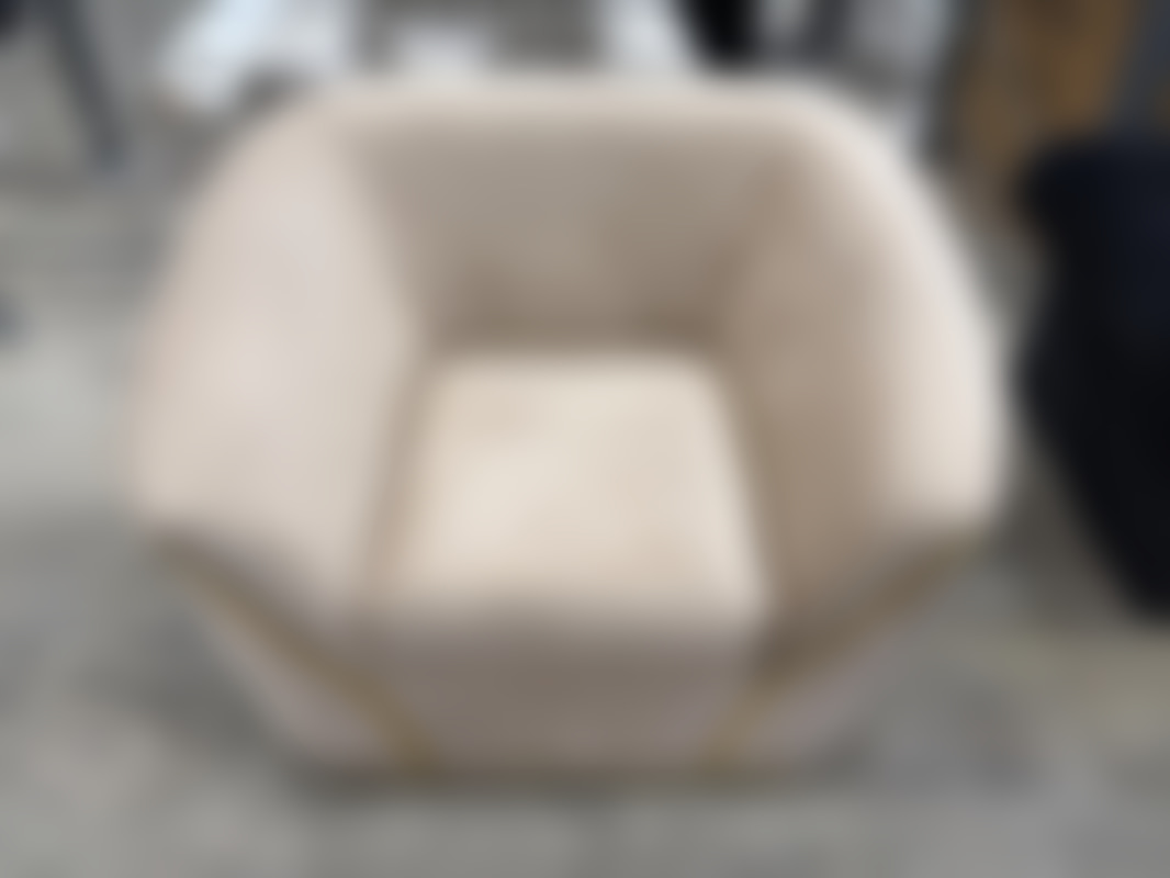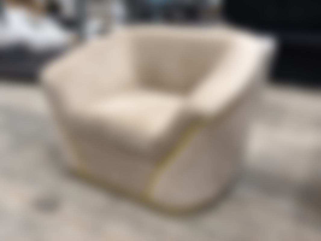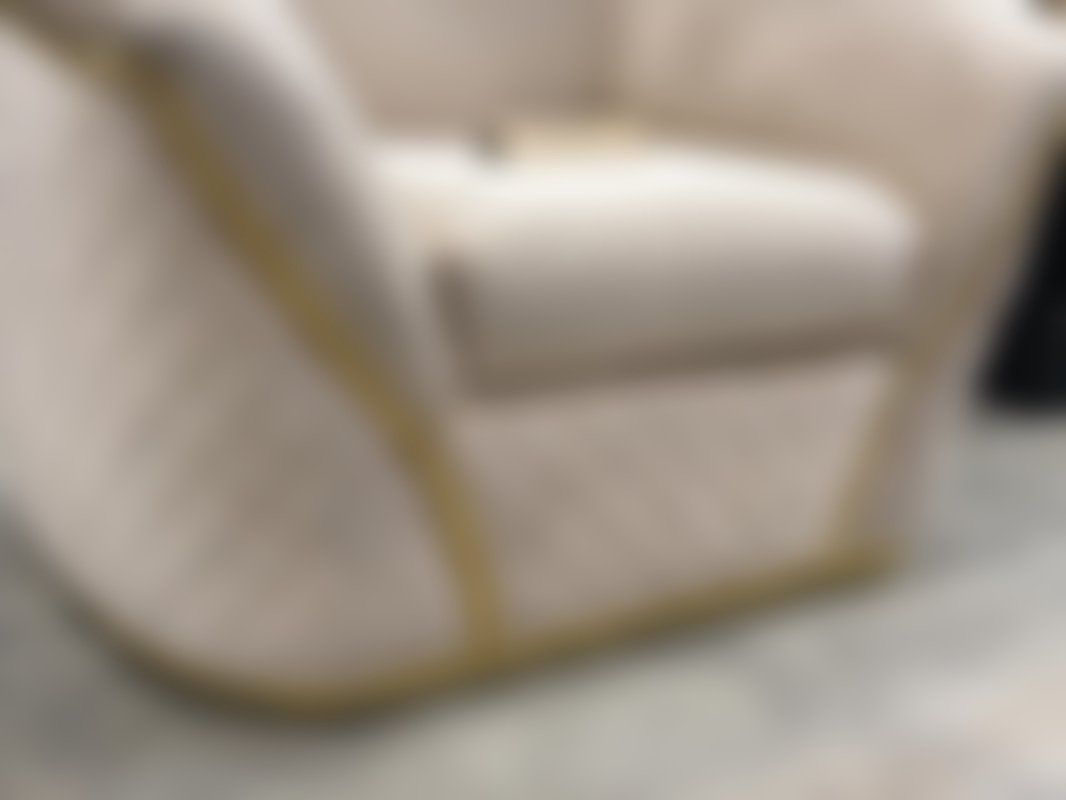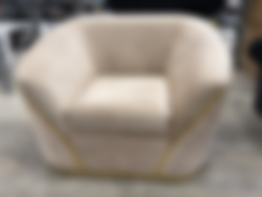 Not allowedFåtölj i beige sammet med detaljer i guld.