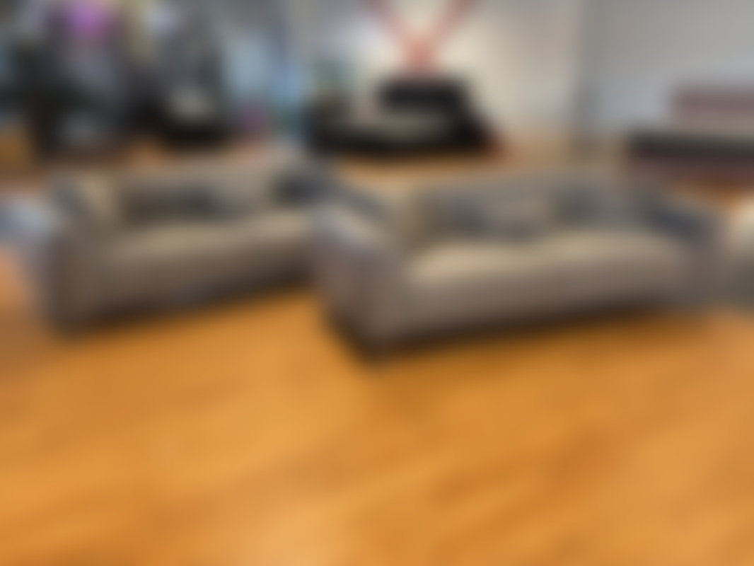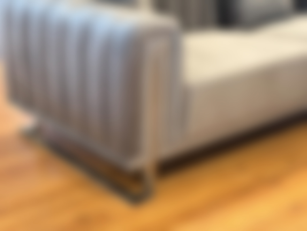 Not allowed2 st 3-sits soffor i grå sammet med ben i gulmetall.