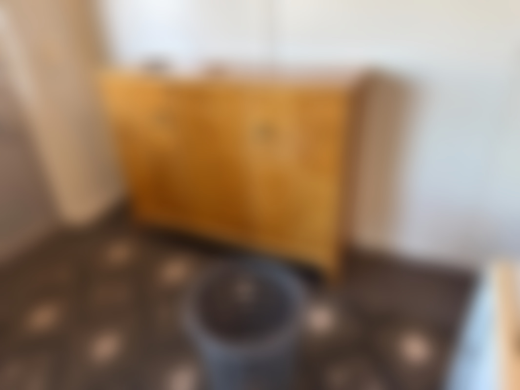 Skåp med hål för sopsortering.