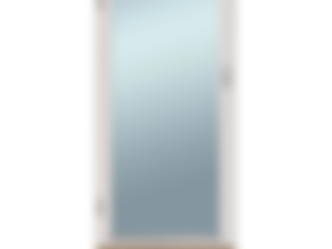 Vit fönsterdörr med helglas. Storlek 8x20, vänsterhängd.