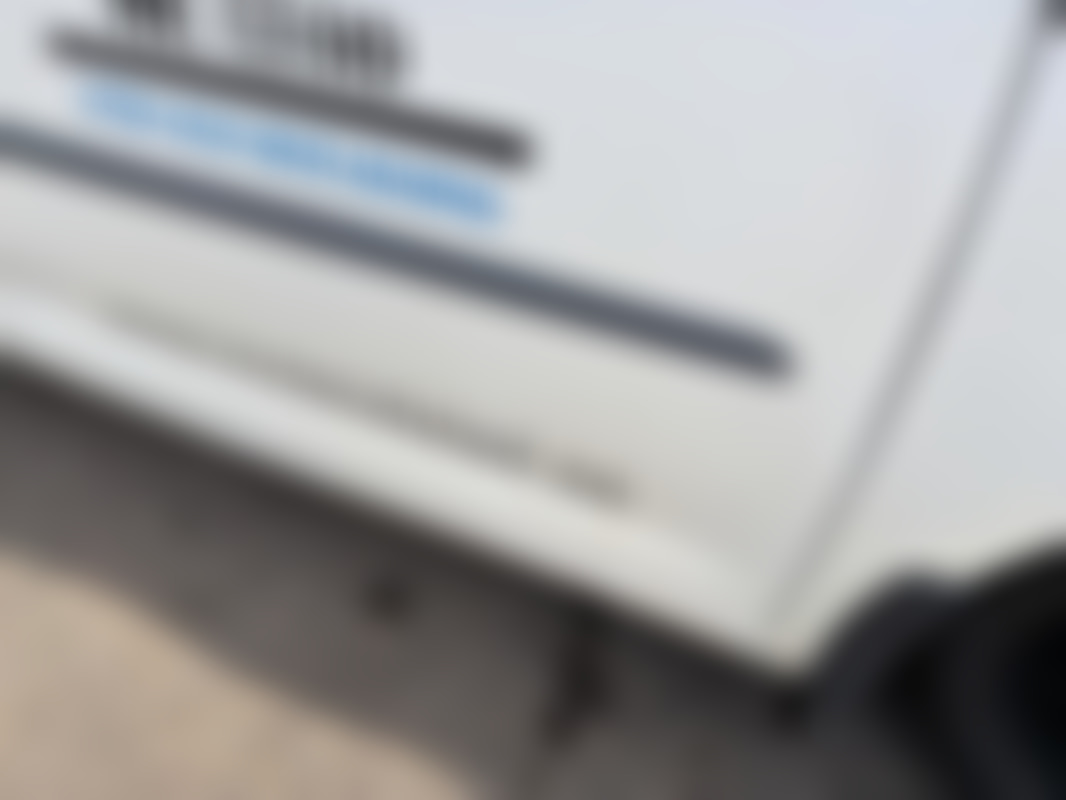 Kända fel/brister: mindre stenskott i vindruta, inbuktningar, skav och flygrost på kaross, förardörren hänger något, bilen behöver städas och tvättas, indikerar att det är dags för service. Se bilder.
