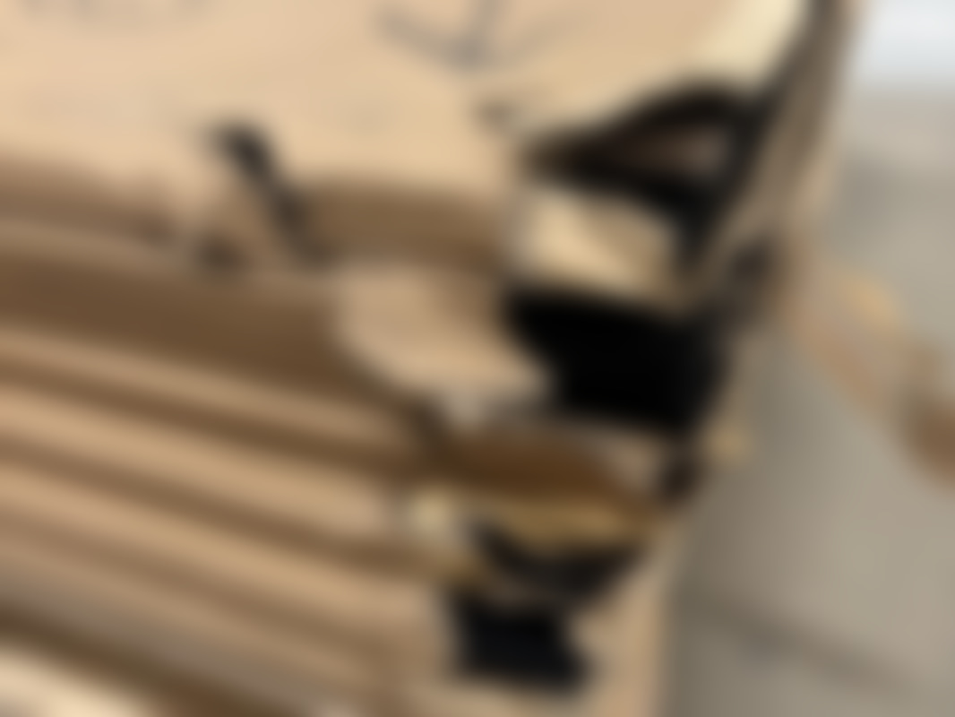 Mindre klämskador förekommer på kanterna i de mjuka delarna. Skada förekommer på en akusikpanel på framsidan i panelen. Se bilder för detaljer om skick.