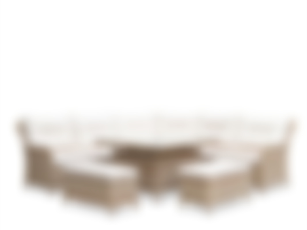 Denna soffgrupp består av en hörnsoffa, ett bord och två sittbänkar med dyna som även kan användas som fotpallar, vilket ger dig flexibilitet att arrangera möblerna efter dina behov. Tillverkad med en robust aluminiumram och klädd i konstrotting, kombinerar denna möbel hållbarhet med estetik. De sandfärgade polyesterkuddarna på 230 gram ger extra komfort och stil, medan bordet med härdad glasskiva på fem millimeter ger en elegant yta för dina drycker och tilltugg. Perfekt för att skapa en avkopplande atmosfär i din trädgård eller på din terrass.